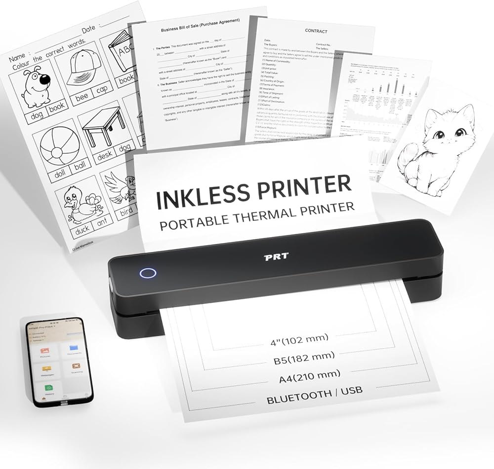 محمولة وقابلة للطباعة في أي مكان: هذه الطابعة الحرارية خفيفة الوزن بوزن 500 جرام تنزلق بسهولة في الحقائب أو الحقائب. يمكنك الطباعة أثناء التنقل، وهي مثالية للسفر أو العمل أو رحلات العمل أو المنزل أو ركوب السيارة أو الحرم الجامعي