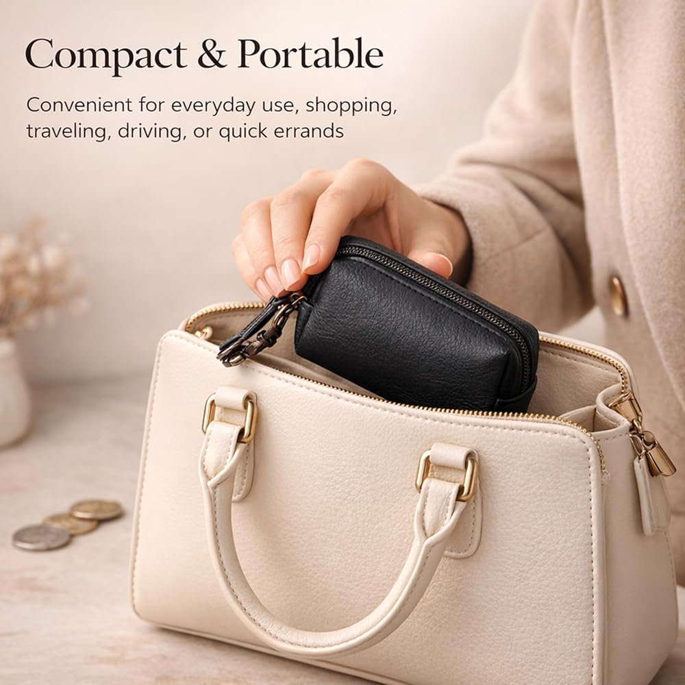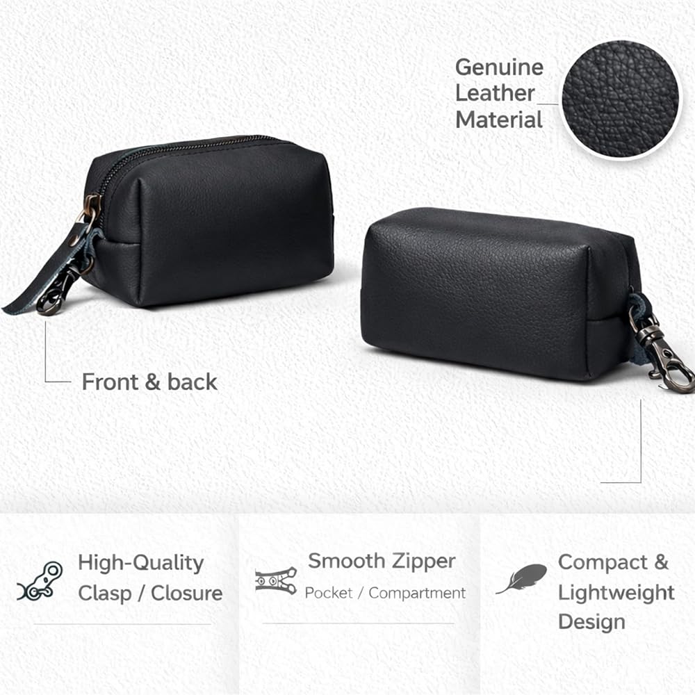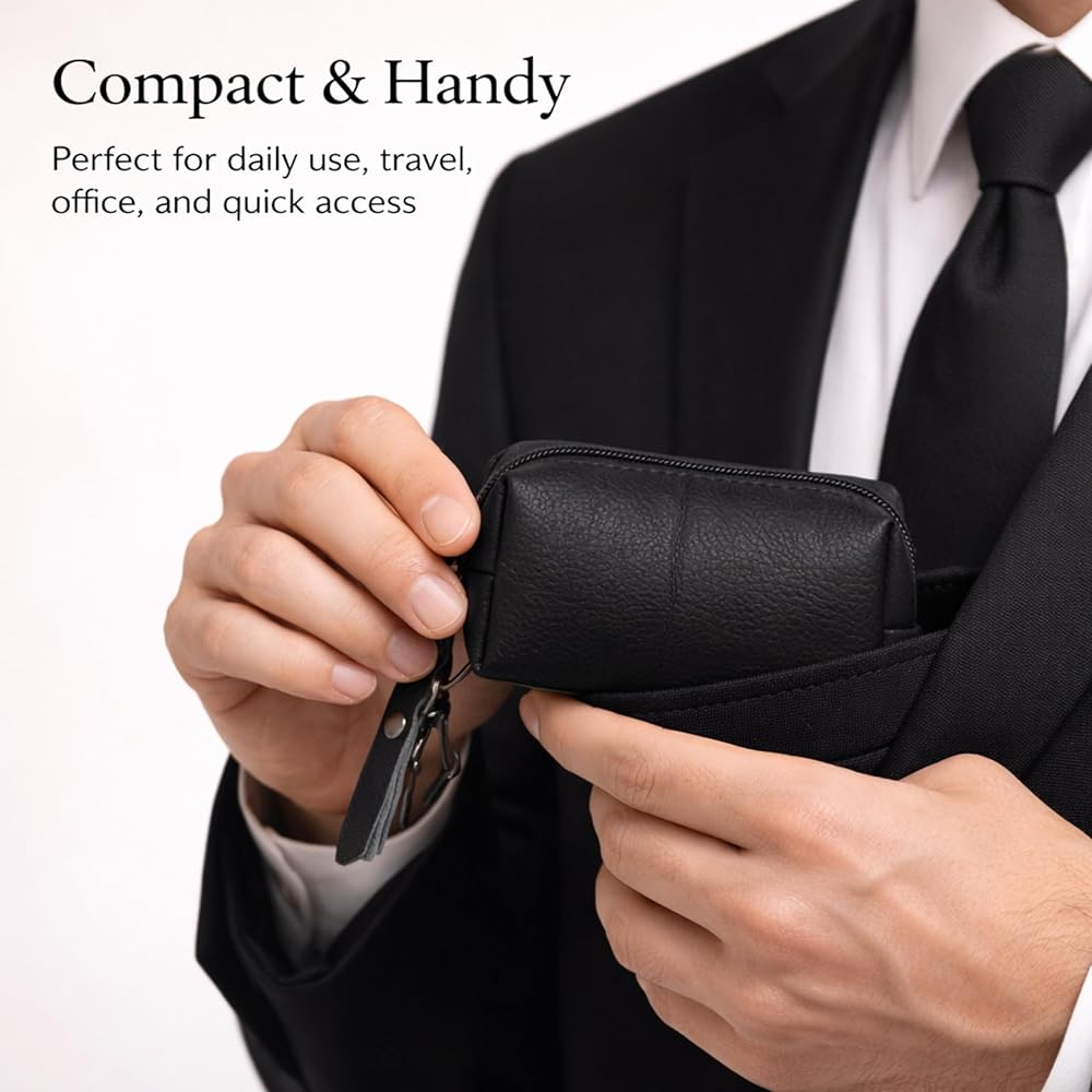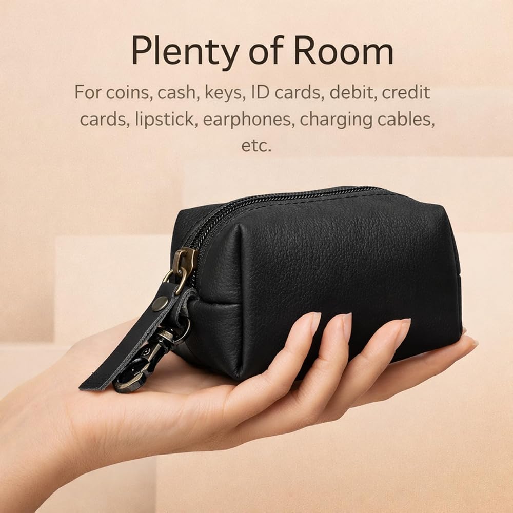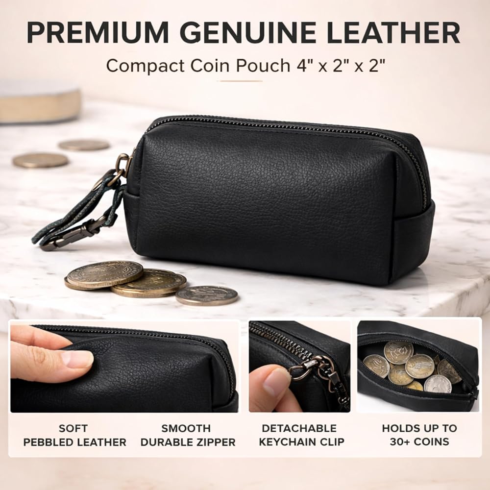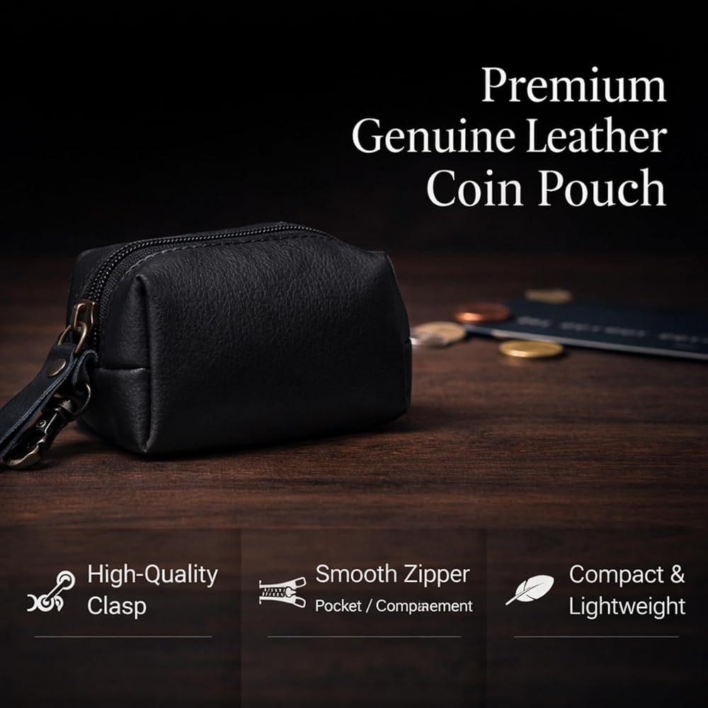 This leather coin pouch was created for people who appreciate simple things that just work well every day. I wanted a compact pouch that feels good in the hand, looks clean, and helps keep small essentials organized without adding bulk to pockets or bags. This pouch is made from genuine leather that feels smooth, durable, and gets better with use over time. The zipper opens and closes smoothly, keeping coins secure and easy to access when you need them. It's the perfect size for loose change, folded cash, keys, or even small items like earbuds or memory cards. The attached key clip adds extra convenience, allowing you to hook it to keys, bags, or belt loops so it's always within reach. The leather has a natural texture that gives the pouch a premium yet understated look. It's designed to be practical, not flashy—something you can carry daily without thinking twice. The compact shape fits comfortably in your hand or pocket, making it ideal for everyday errands, travel, or minimal carry setups. This pouch is also easy to maintain. A simple wipe keeps it clean, and the leather develops a natural character over time, making each piece feel unique. Whether you're someone who likes staying organized or just need a small, reliable place for your essentials, this coin pouch is built to be dependable. Thoughtfully designed, well-crafted, and made for daily use, this leather coin pouch is a small accessory that makes everyday life a little easier. It's simple, functional, and made with care for people who value quality and convenience.