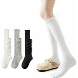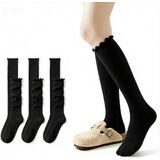 More than just socks, they're a wardrobe essential. The delicate frilly ruffles add a playful yet sophisticated touch to any ensemble. Perfect for pairing with your favorite dresses, skirts, shorts, or even loungewear, these knee high socks instantly elevate your look from ordinary to extraordinary. They pop with style under boots, peep out from sneakers, or stand alone as a bold fashion accessory.