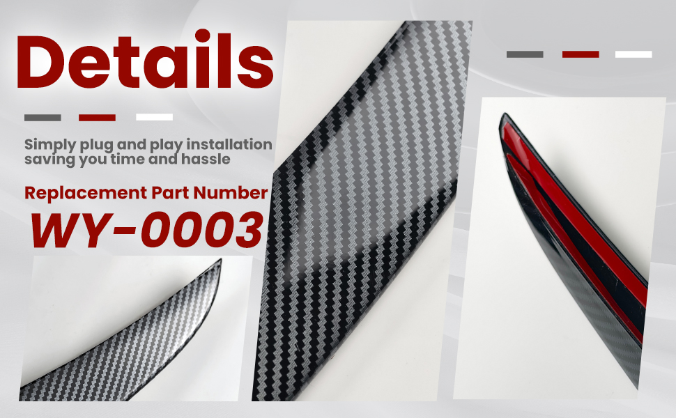 • اللون: سبويلر من ألياف الكربون اللامعة. المظهر هو ألياف الكربون، وليس ألياف الكربون، يرجى التأكد من اللون قبل الشراء.