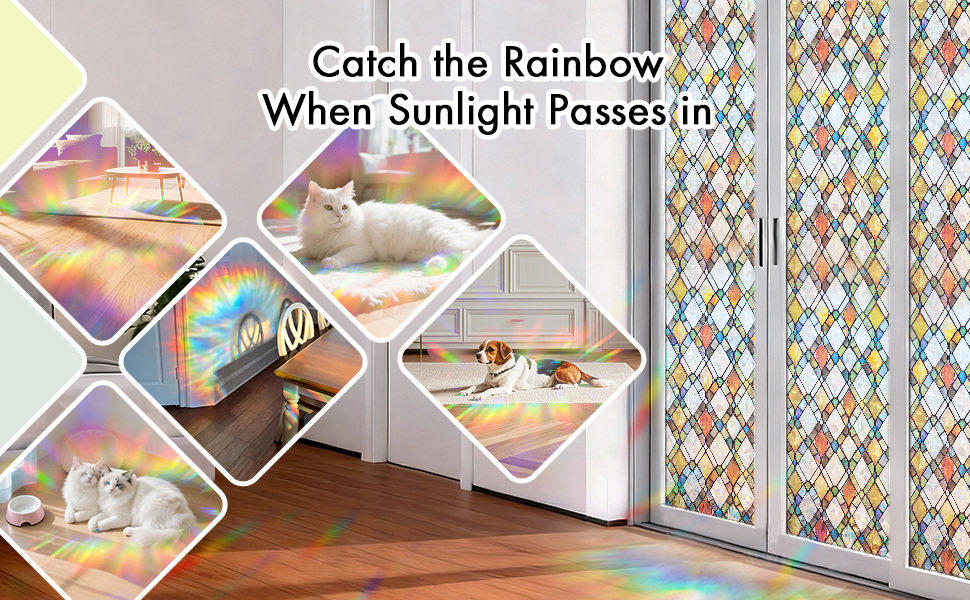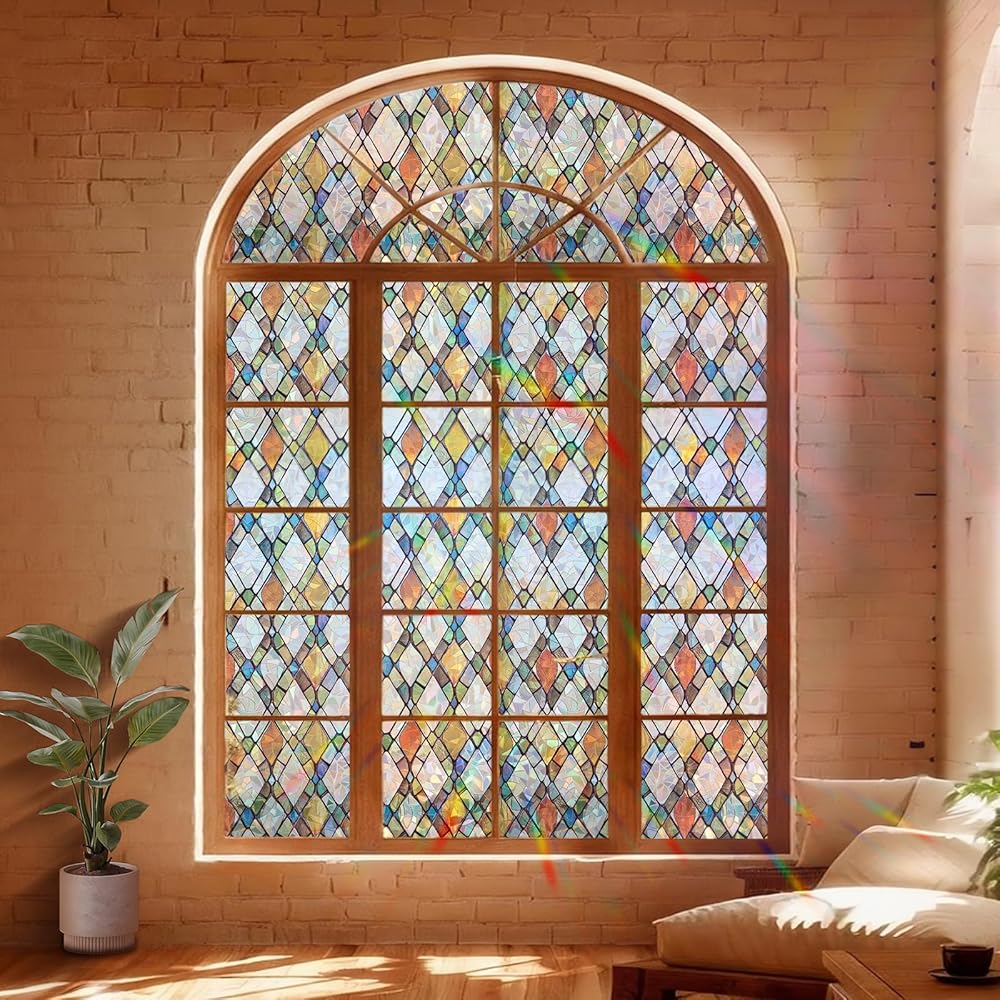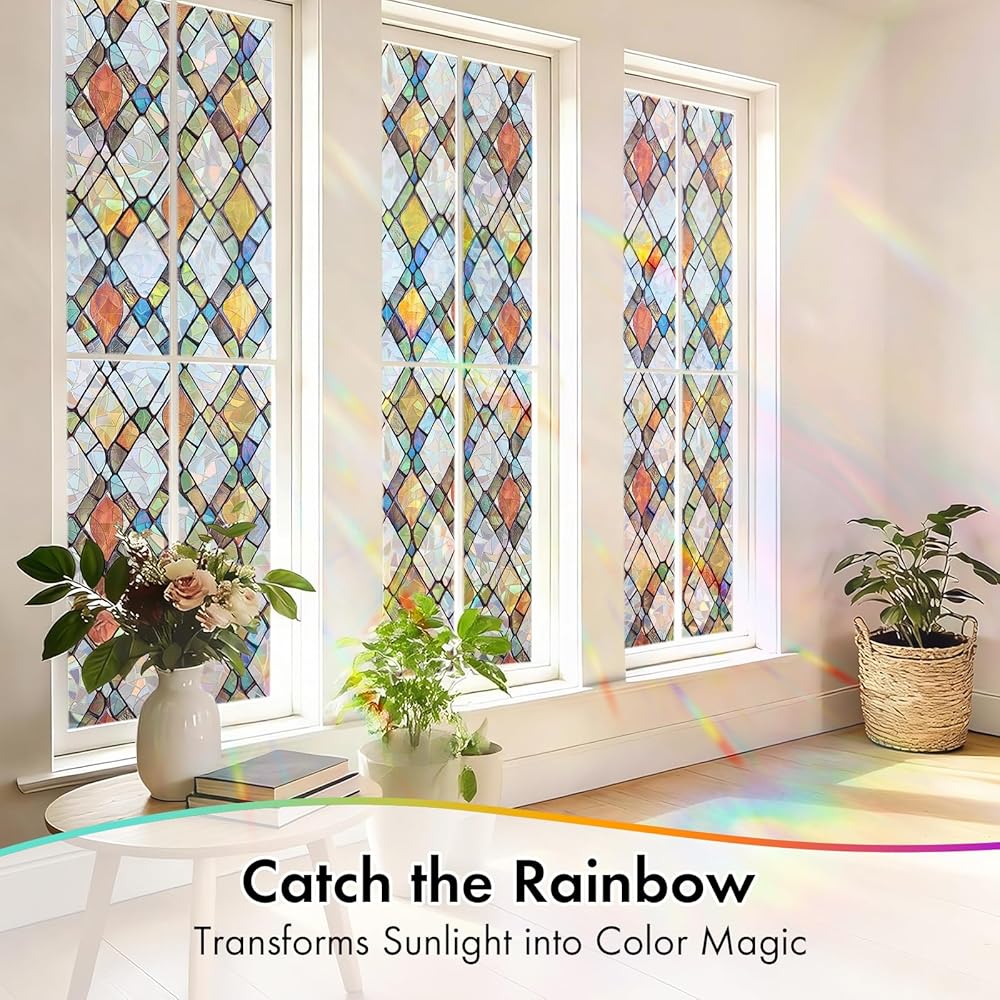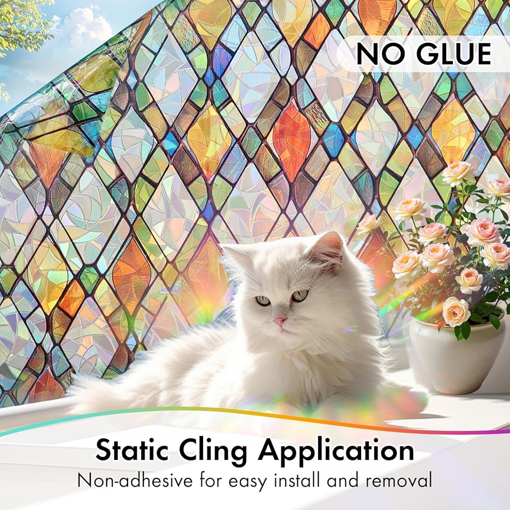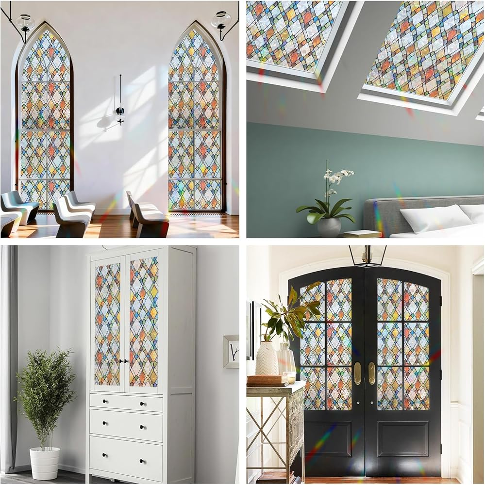 فيلم الخصوصية للنافذة، ملصق زجاجي ثابت مزخرف بألوان قوس قزح، بدون غراء، لون نافذة قابل للإزالة مع أدوات التثبيت، غطاء زجاجي للباب الأمامي مضاد للأشعة فوق البنفسجية للمنزل، 17.7 بوصة × 78.7 بوصة
