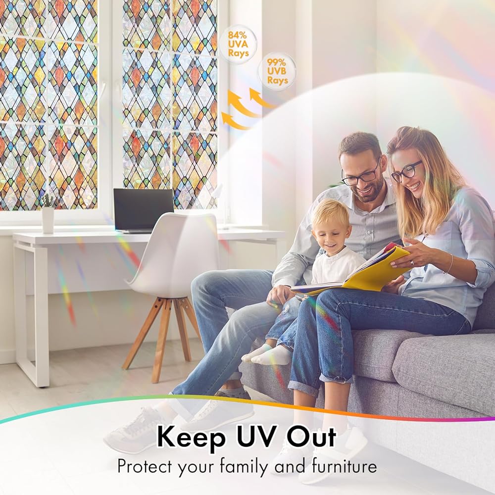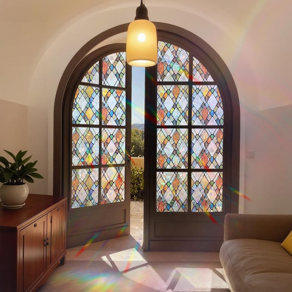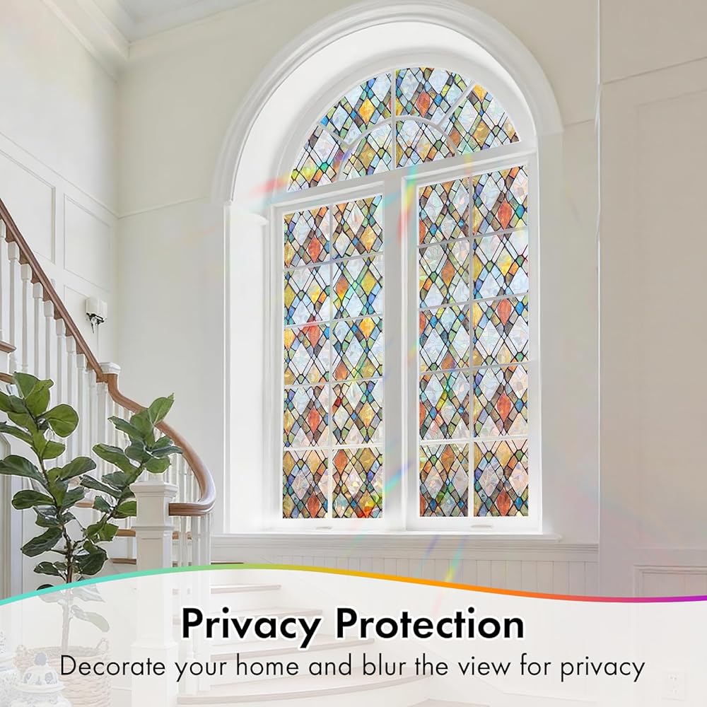 【تصميم وخصوصية من الزجاج الملون النابض بالحياة】قم بتحويل مساحتك بتأثيرات الزجاج الملون الأنيقة ذات النمط الشبكي التي تخلق خصوصية فورية أثناء الاستحمام في ضوء قوس قزح المبهر. استمتع بمناظر غامضة دون التضحية بالسطوع - مثالية للحمامات والمداخل والنوافذ المواجهة للشارع
