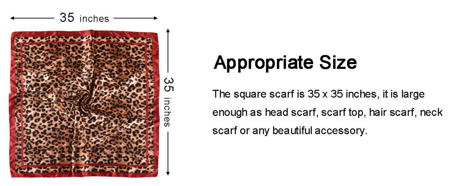 مقاس الوشاح المربع 35 × 35 بوصة، وهو كبير بما يكفي كوشاح للرأس للنوم، ووشاح للرأس أثناء النهار. الوشاح خفيف الوزن يمكن أن يشكل زخرفة رائعة لملابسك.