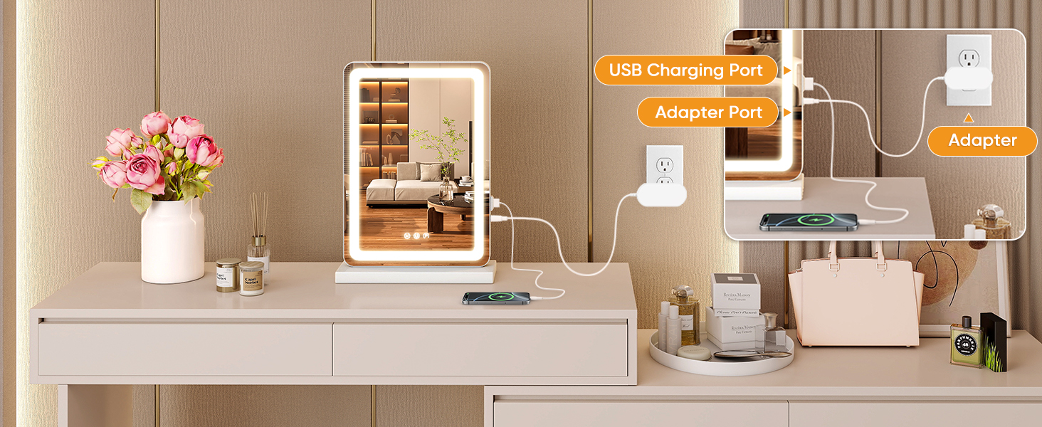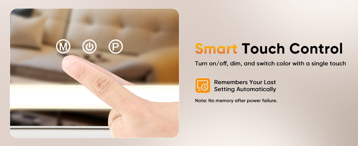 • 【وظيفة الذاكرة الذكية 】-تتذكر مرآة الزينة آخر إعدادات الإضاءة لديك. عند إيقاف تشغيله (دون فصله)، فإنه يستعيد نفس السطوع ودرجة حرارة اللون في المرة التالية التي تستخدمه فيها.