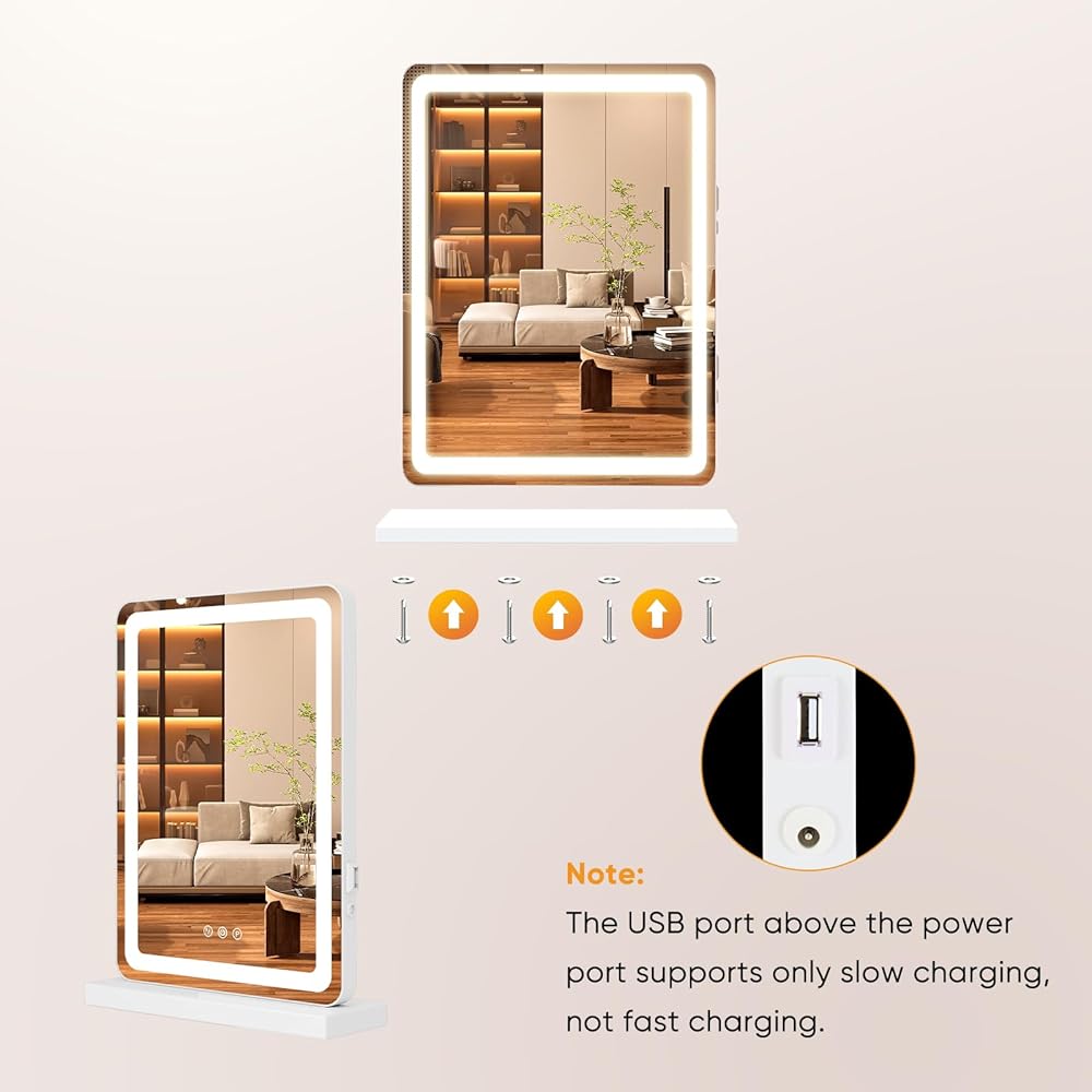 • 【إضاءة بـ 3 ألوان وسطوع قابل للتعديل】 - اختر من بين أوضاع الإضاءة البيضاء الدافئة والطبيعية والباردة. السطوع قابل للتعتيم من 0 إلى 100%، مما يسمح لك بتخصيص الإضاءة المثالية للمكياج أو العناية بالبشرة أو القراءة.