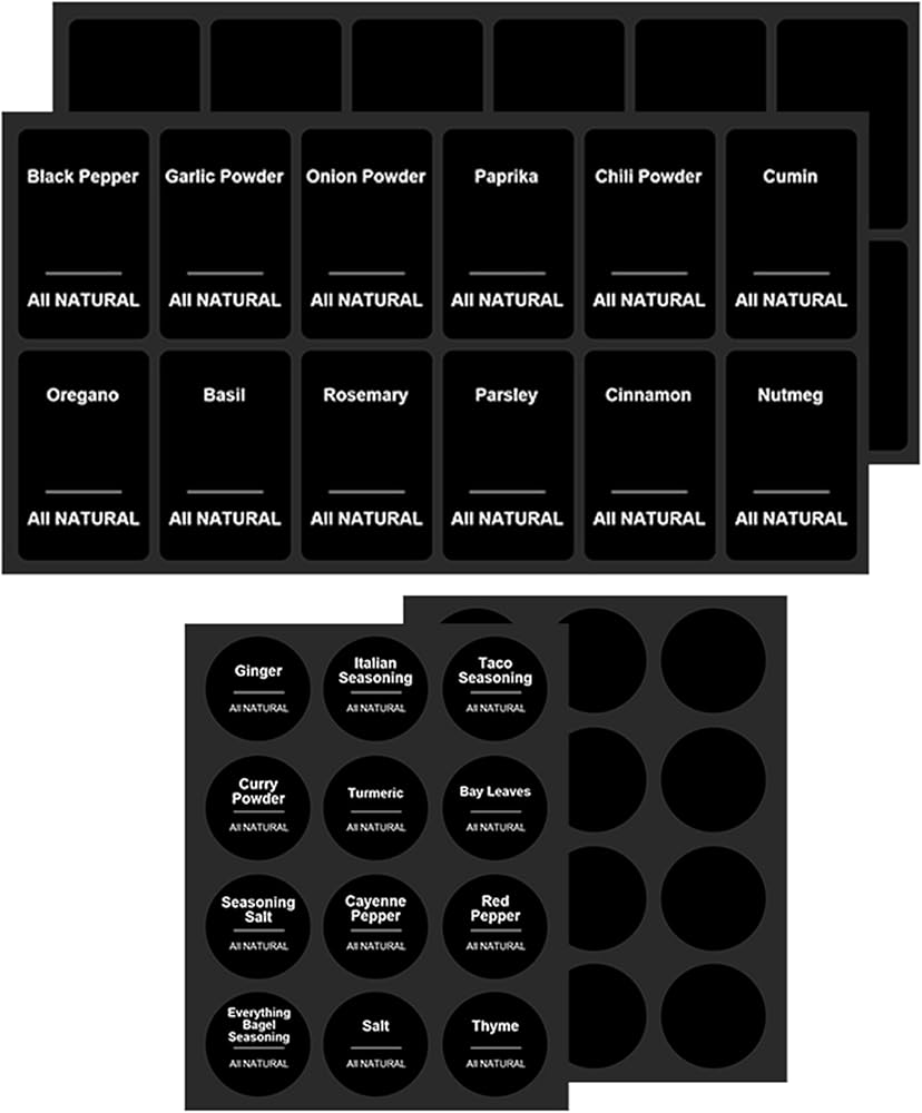 Spice Jar Labels - Black Preprinted Waterproof Stickers for Kitchen Spice Jars, Seasoning Labels for Pantry Organization