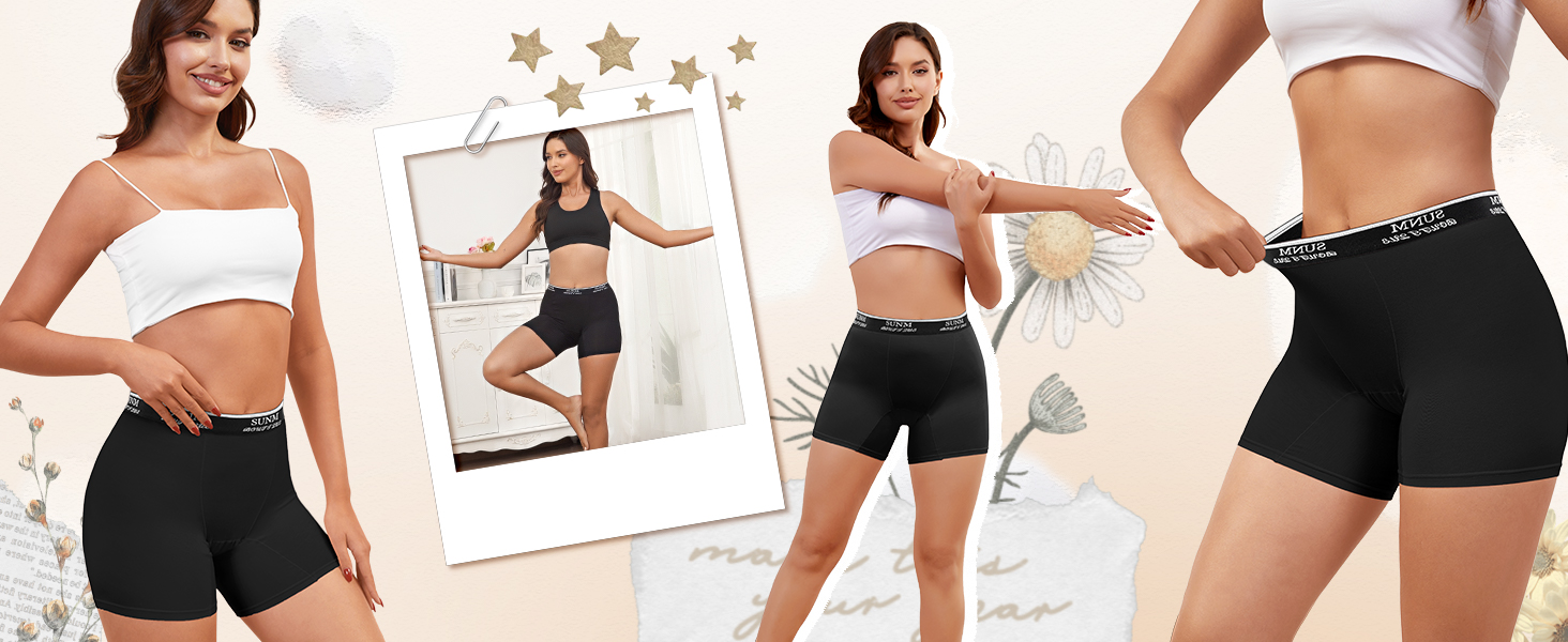 مادة فاخرة تشبه السحابة - تمتع بلمسة زبدانية ناعمة لا مثيل لها مع سراويل الملاكم النسائية النموذجية الخاصة بنا. القماش مصنوع من 95% مودال و5% سباندكس وهو مسامي للغاية ومطاط ويمنحك شعورًا رائعًا على بشرتك طوال اليوم. استمتعي بقدرة امتصاص فائقة للرطوبة ولا تتعرق أبدًا مع الملابس الداخلية النسائية القصيرة للأولاد.