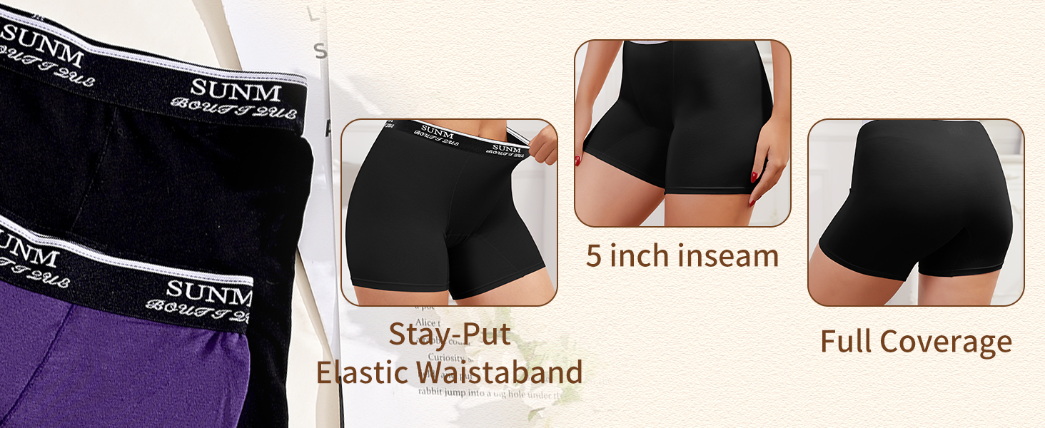 استمتع بتجربة الراحة من المستوى التالي - كل التفاصيل مصممة لراحتك. تتميز سراويل الملاكم النسائية لدينا بتصميم خالٍ من الملصقات ولا تحتوي على درزات جانبية لإزالة الاحتكاك المحتمل. يتم وضع الخياطة القوية والناعمة بشكل مسطح على بشرتك، بينما يوفر النسيج النموذجي الناعم والقطع المدروس راحة حقيقية ضد الاحتكاك. وهذا اختيار هدية ممتاز لأشخاصك الأعزاء.