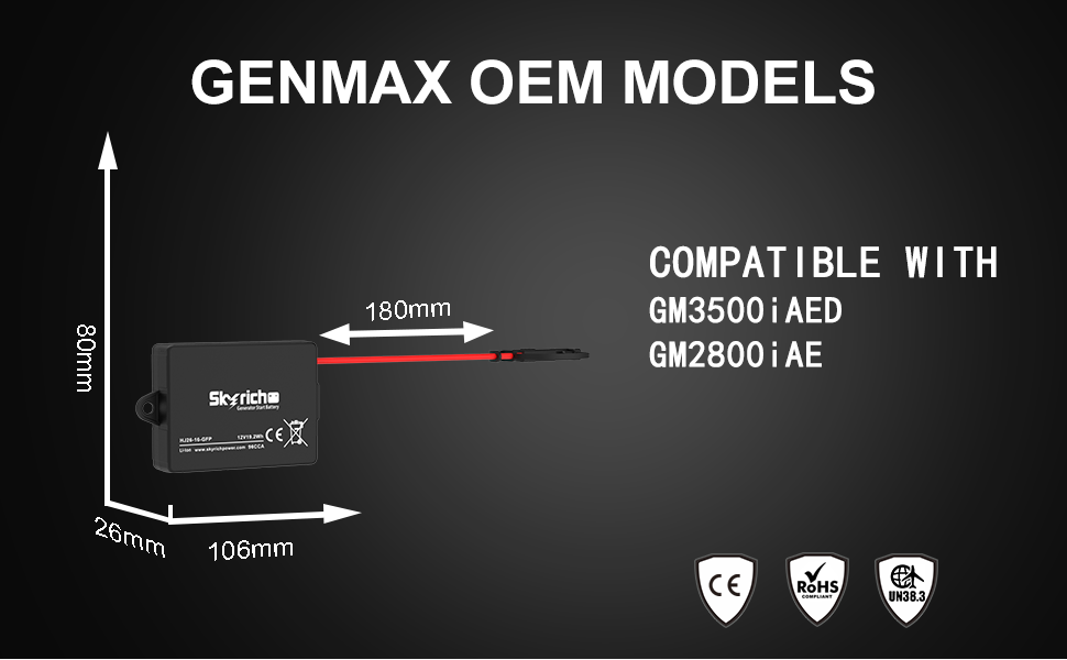 ملحوظة: بطارية البداية هذه مخصصة لبدء تشغيل المولد فقط ويمنع منعا باتا استخدامها في تطبيقات أخرى مثل الرياضات القوية والدراجات النارية.