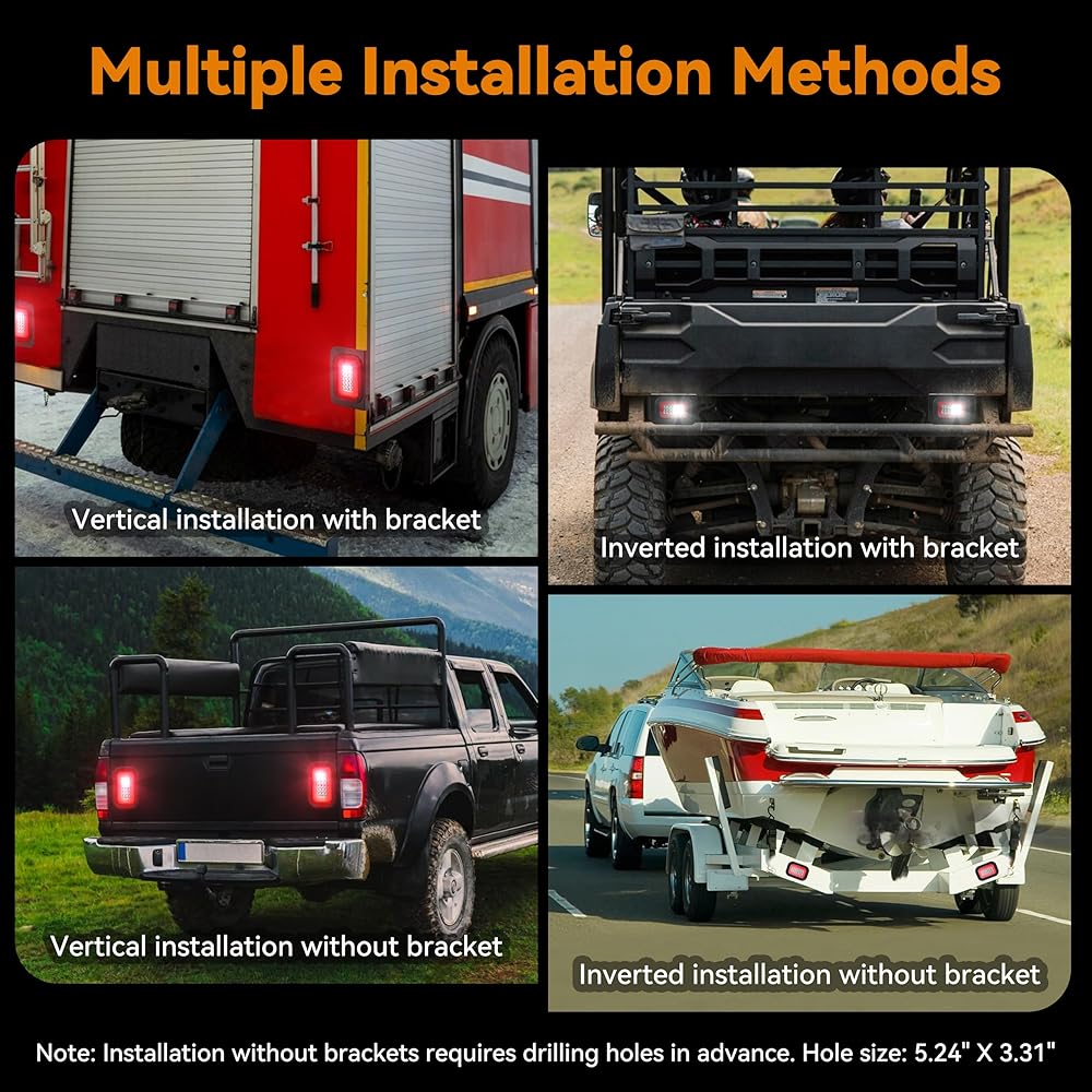 تطبيق واسع: مصابيح الذيل للمقطورة LED الخاصة بنا مناسبة لجميع أنظمة 12 فولت، ويمكن استخدامها كمصابيح قيادة/عكس/فرامل ومصابيح خلفية لمختلف الشاحنات والمقطورات والجرارات ومركبات RV ومقطورات الخيول ومقطورات السفر وشاحنات التفريغ والقوارب والشاحنات والمركبات الخاصة، إلخ. يرجى التحقق من حجم الثقب قبل الشراء.