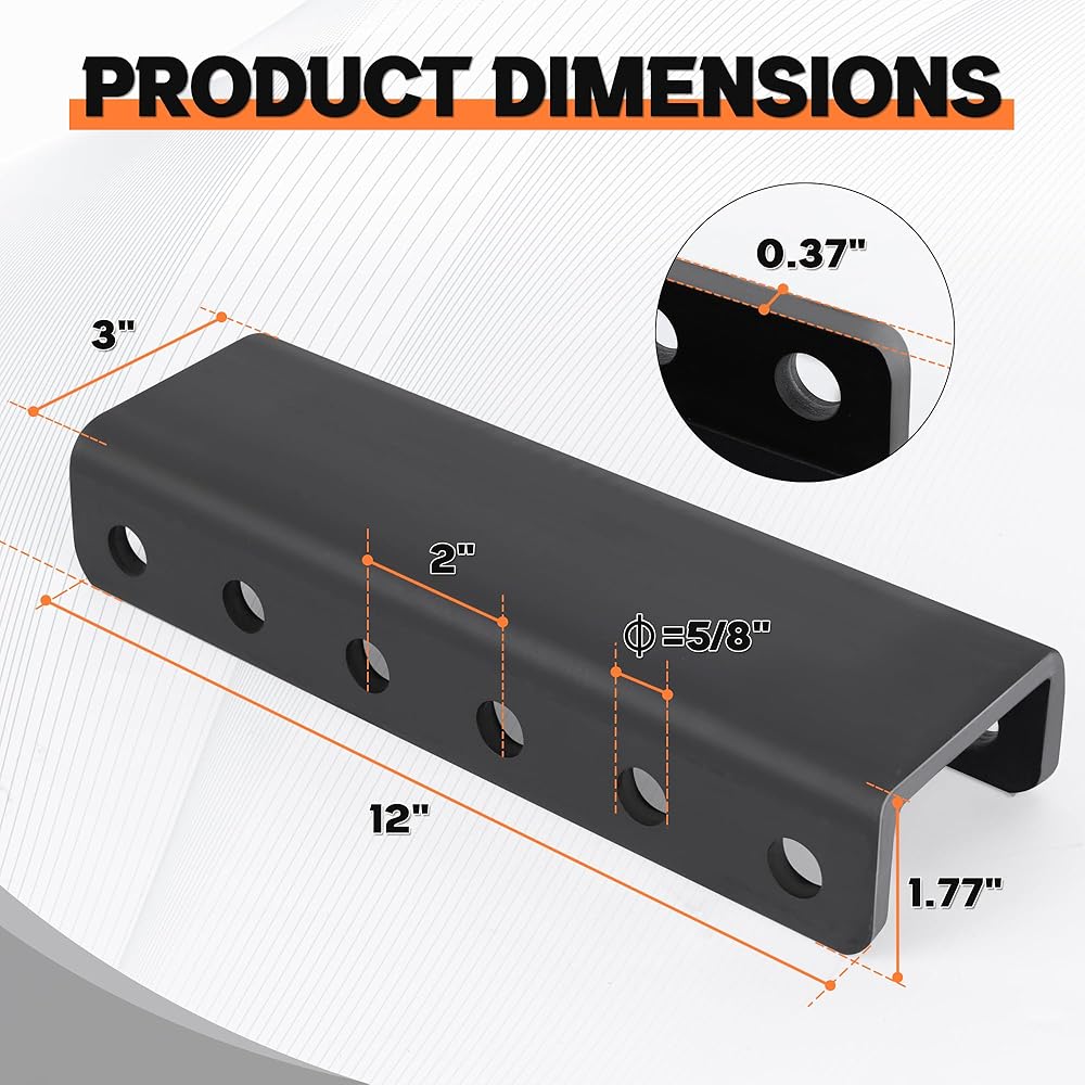 الأبعاد: طول 30.48 سم وعرض 7.62 سم، سمك 0.37 سم، مسافة الفتحات 5.08 سم.