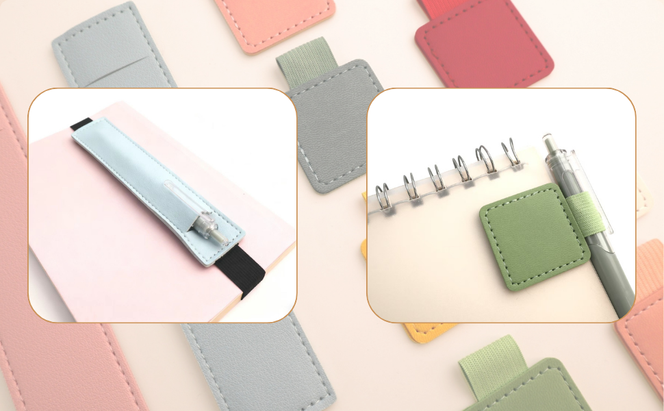 4. مادة ممتازة واستخدام واسع: مصنوع من جلد البولي يوريثان عالي الجودة، جميع الحوامل متينة وتوفر شعورًا بالراحة. مثالي للطلاب والمحترفين وأي شخص يحتاج إلى تنظيم الأقلام على دفاتر الملاحظات أو المجلات أو حافظات الأجهزة اللوحية.