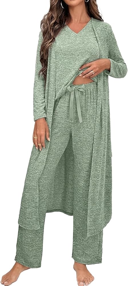 3 Piece Loungewear: Lightweight cardigan for women can be worn when the weather is warm or when it's cooler. The short-sleeved V-neck T-shirt is a versatile piece that can be paired with anything. The casual wide-leg pants with a ribbon drawstring waist are adjustable and comfortable to wear. You can wear them separately or as a set