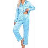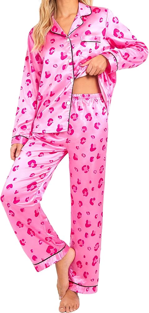 تصميم فريد: تتميز مجموعة البيجامة المكونة من قطعتين بسراويل حريرية مع حزام خصر مرن وتتوافق مع قميص برقبة على شكل حرف V بأكمام طويلة وحريرية مع جيب على الصدر، وياقة مشقوقة، وزر أمامي يصل إلى الوركين. طقم الصالة ناعم وأنيق ليمنحك نومًا هادئًا
