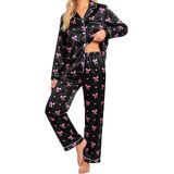 يرجى النصائح: يمكن غسل أطقم البيجامة الحريرية النسائية ذات الأكمام الطويلة في الغسالة بماء بارد مع الألوان المشابهة. يُعلق ليجف أو يُوضع بشكل مسطح حتى يجف. لا تقم بالكي أو التبييض في درجة حرارة عالية. المقاس الخاص بنا هو المقاس الأمريكي القياسي، يرجى الرجوع إلى جدول المقاسات قبل الطلب