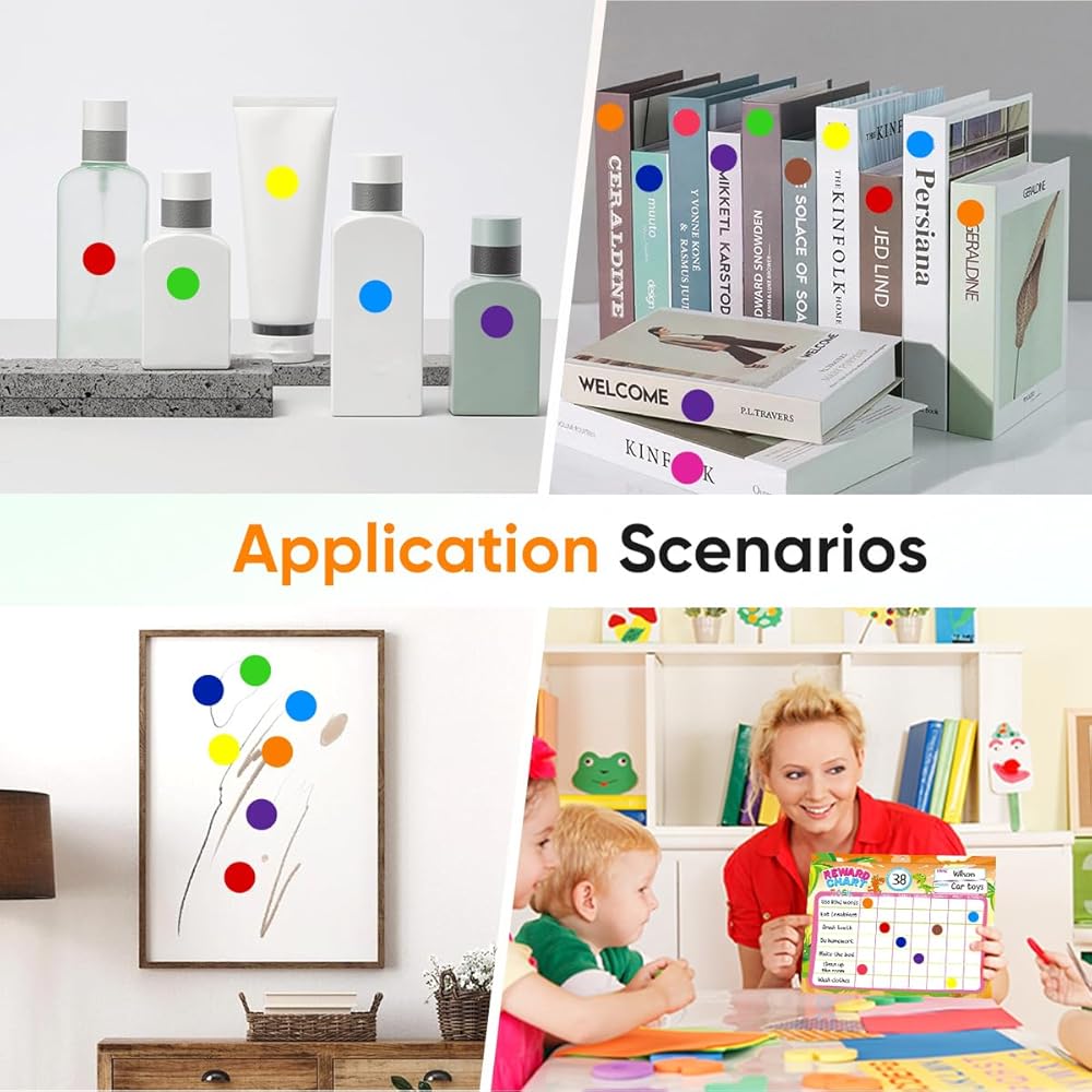 المزيد من الاستخدامات: هذه الملصقات ذات النقاط الملونة مناسبة لفنون الأطفال وحرفهم اليدوية ومخططات المكافآت وأنشطة التعلم والمشروعات التي تصنعها بنفسك. يمكنهم تحفيز الإبداع لدى الأطفال والمساعدة في تطوير المهارات الحركية الدقيقة. إنها خيار ممتاز للتعليم المنزلي أو رياض الأطفال أو الترفيه في الأيام الممطرة. يستمتع البالغون أيضًا باستخدامها لتزيين كتب التخطيط والمذكرات والهدايا.