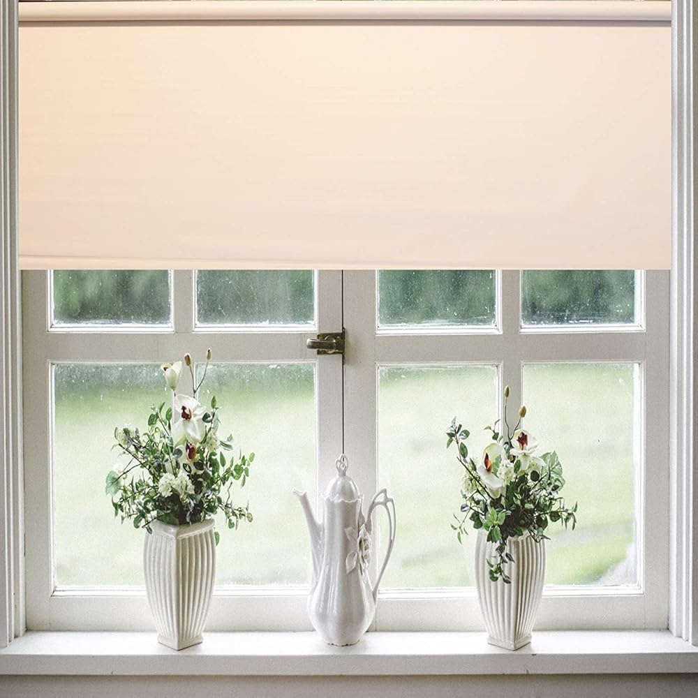 Vinyl Roller Shade - Easy to Install Cordless Room Darkening Blind for Office and Home (Window Images)Vinyl Roller Shade with three different sizes. Brackets, Mounts and Screws are included with order. Cordless Shades for Indoor Windows are Room Darkening and will block out most sunlight. (Not 100% Blackout Blinds for Windows or Blackout Shades for Windows) The fabric is a 6 mil in width Vinyl that will cover most sunlight. The Roller Shade is cordless which makes it safe for children in the house. Window shades come with brackets and parts and is extremely easy to install. It will keep your room dark and is perfect for any type of room, whether it is your bedroom, home office, living room , or kitchen. MULTIPLE FUNCTIONS: Our blinds & shades blocks out sunlight and UV rays. The thermal insulated backing can reduce room heat and cold loss through window during winter and summer, helping cut your energy bills. It also works well in noise reducing and privacy protection. Our roller shades for windows can be great for window curtains bedroom, living room window cover, bathroom mini blinds for windows, kitchen window shade, french door curtains , basement window curtains, curtains for sliding glass door, door cover, door window covering, and home office. EASY TO INSTALL AND MAINTAIN: Our window roller shade contains an accessory kit including metal bracket, screws and install instruction for convenience. Clean with damp cloth, Low Iron. LIGHT-BLOCKING, HEAT INSULATION AND COMFORT: ★Roller shade for home is perfect for creating a warm and cozy space that's open and chic, shielding you from the sun in complete style. CONVENIENT INSTALLATION: ★Details of how to install the roller shade are included in the fitting guides. It will helps you a lot to install the blinds. ★New item maybe has subtle wrinkles, but it will disappear in several days or use steam iron would be better.