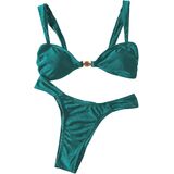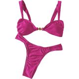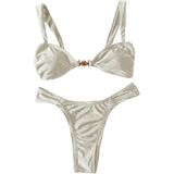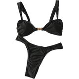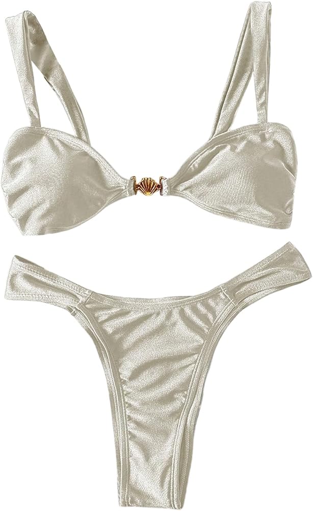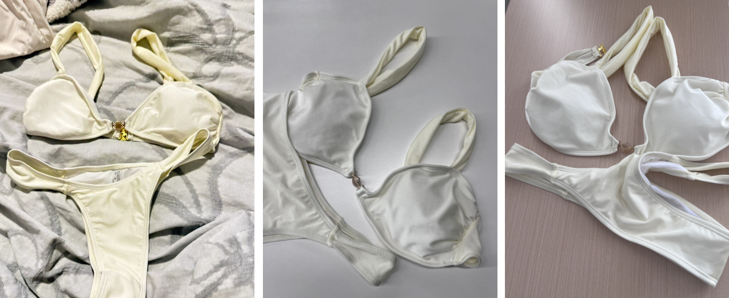 - المزايا: بدلة سباحة بكيني ذات خصر عالٍ ومرتبطة بالصدفة، طقم بيكيني مكون من قطعتين