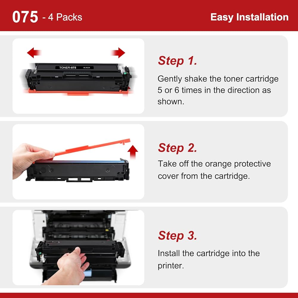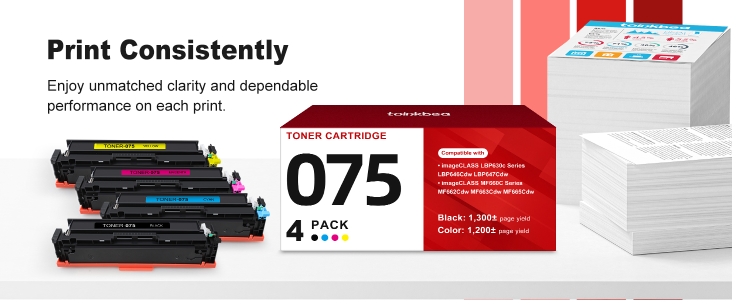• توافق الطابعة: استبدال خرطوشة الحبر Toinkbea 075 لمجموعة خرطوشة الحبر Canon 075، مصممة للعمل بسلاسة مع Canon imageCLASS LBP640 LBP640C LBP646Cdw LBP647Cdw MF660 MF660C MF662Cdw MF663Cdw MF665Cdw Series Printer.
