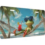 غطاء لوحة الترخيص الأمامي، ملحق ديكور سيارة على شكل ضفدع على الشاطئ المحيط، معدن ألومنيوم مقاوم للصدأ، لوحة سيارة أمريكية جديدة، غطاء مزخرف مع 4 فتحات للرجال والنساء، 6 * 12 بوصة in Kuwait