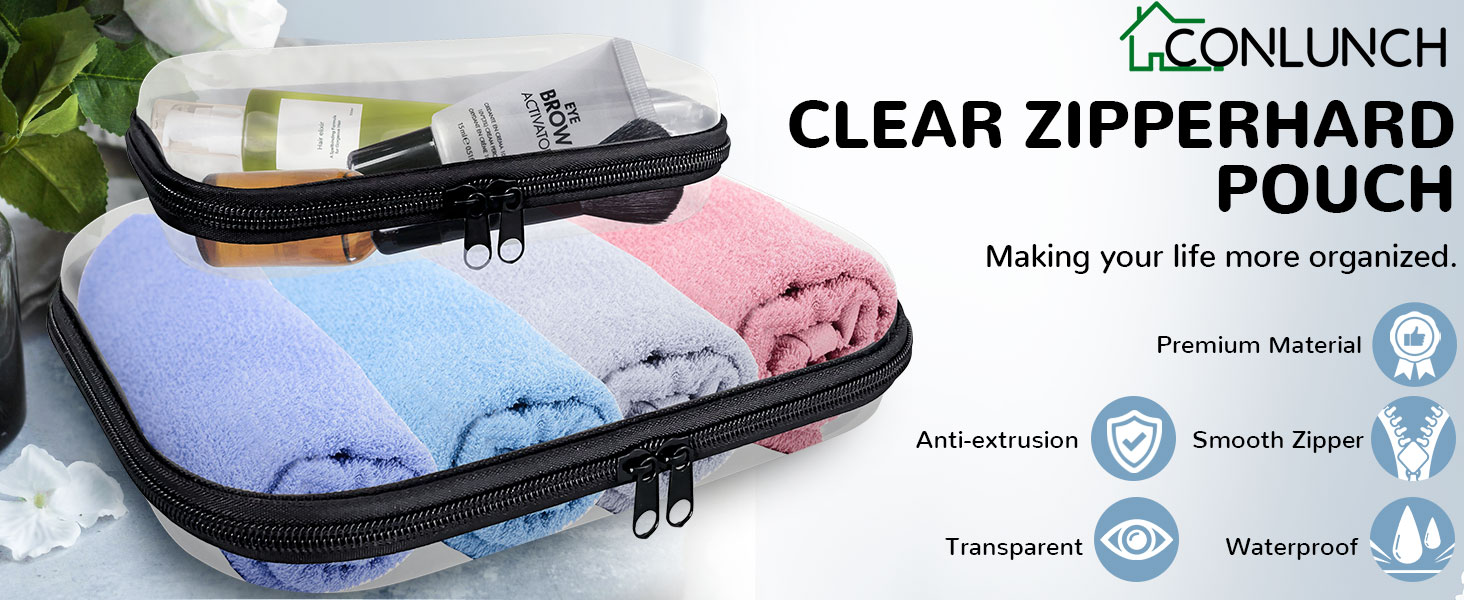 تصميم قوي ومقاوم للماء: هذه الأكياس ذات السحاب الصلب مصنوعة من مادة PET الصلبة عالية الجودة، وجميع الحواف ناعمة وسلسة، مما يضمن حماية طويلة الأمد ضد الانسكابات والغبار والتأثيرات لفترة طويلة باستخدام احتياجات التخزين والسفر.