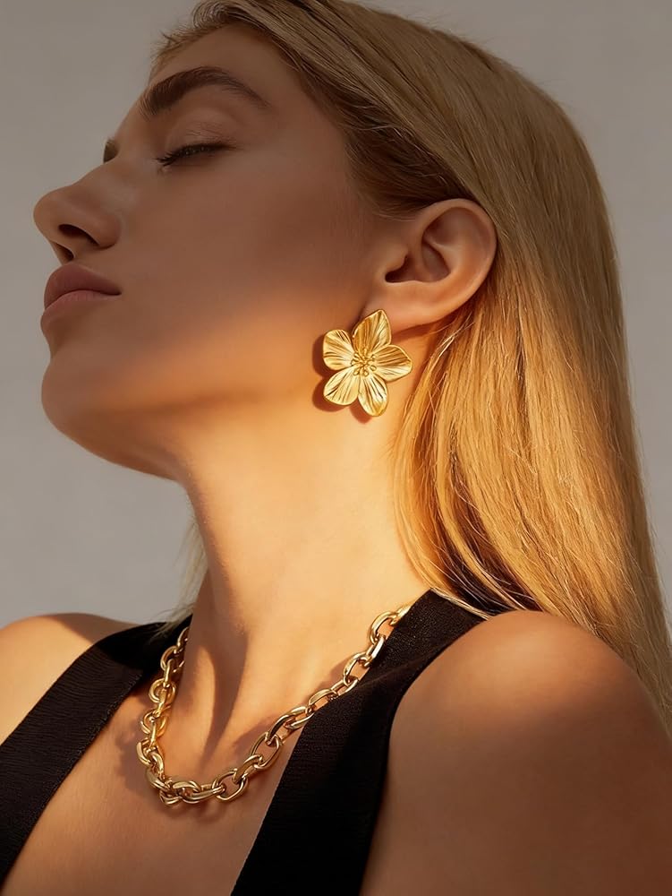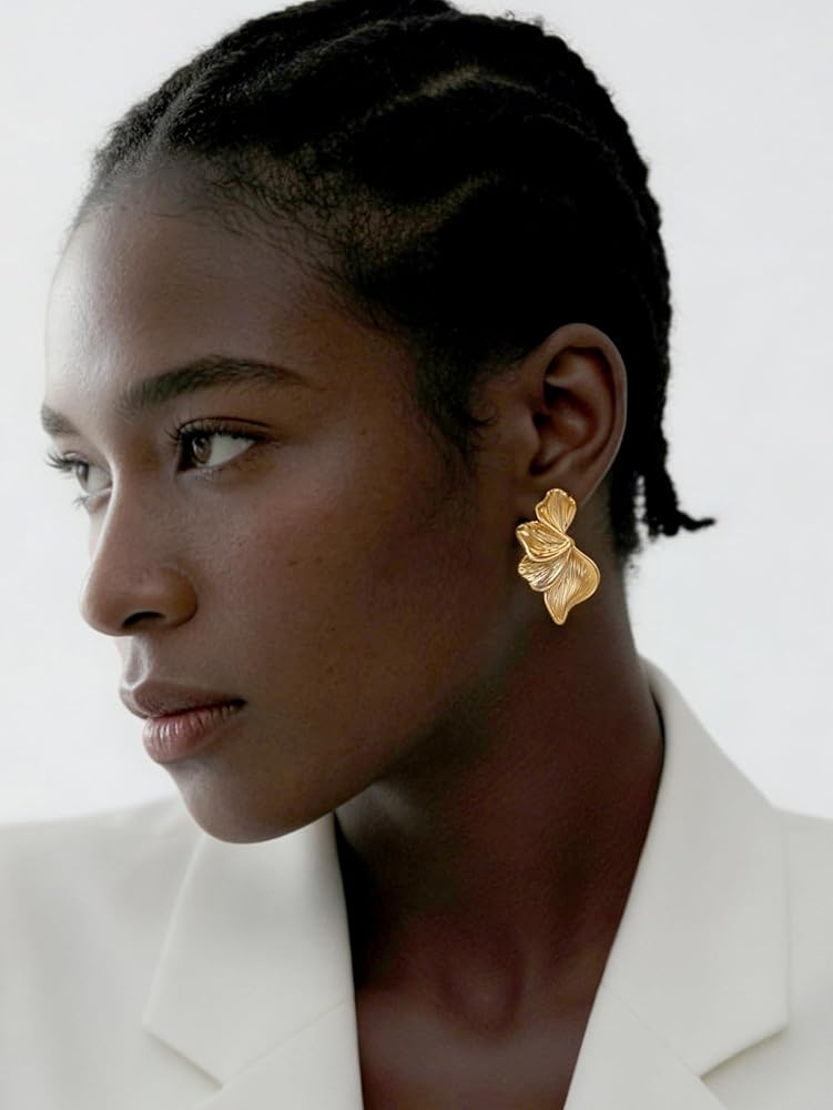 • صناعة متقنة: مجوهرات متينة وأنيقة، يخضع كل زوج لرقابة صارمة على الجودة، مع هيكل قوي وطلاء ذهبي طويل الأمد يقاوم البهتان. تضيف منحوتات الزهور وأوراق الشجر المفصلة لمسة من الأناقة، مما يجعل هذه المجموعة ليست عصرية فحسب، بل أيضًا إضافة متينة لمجموعة مجوهراتك.