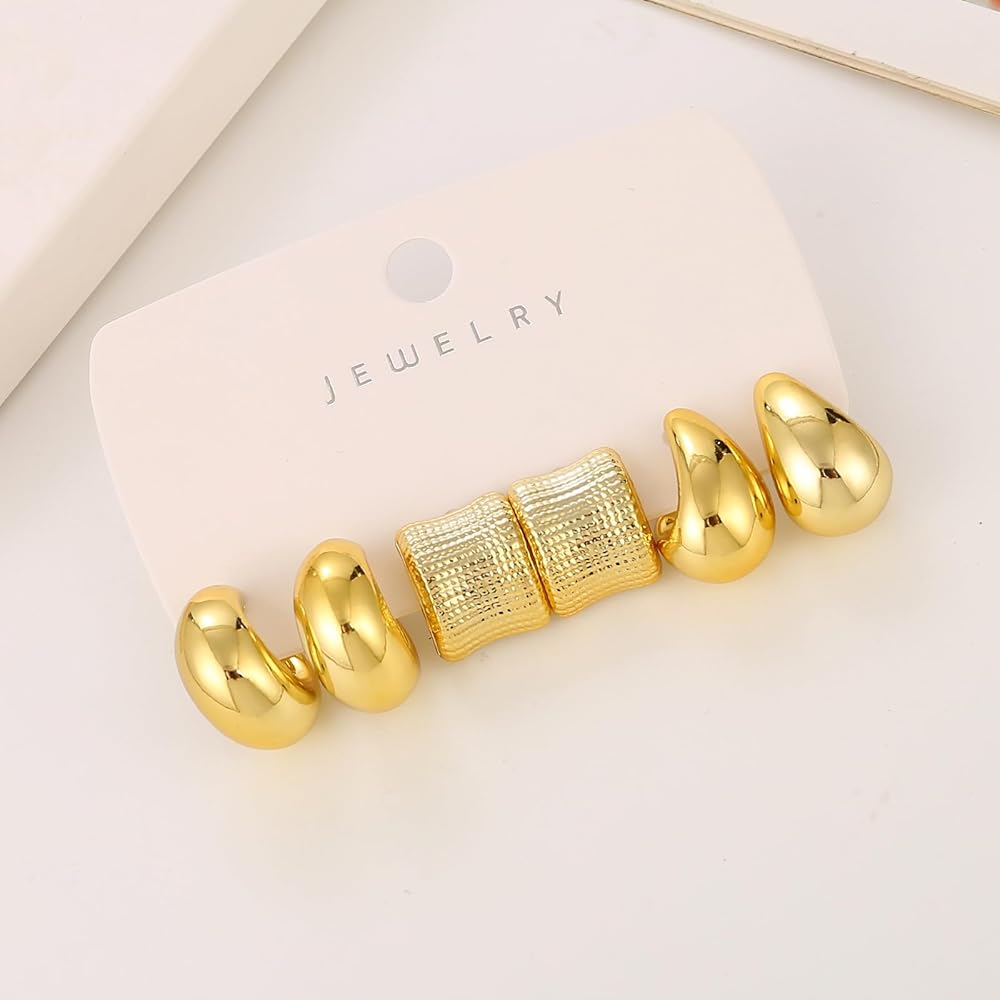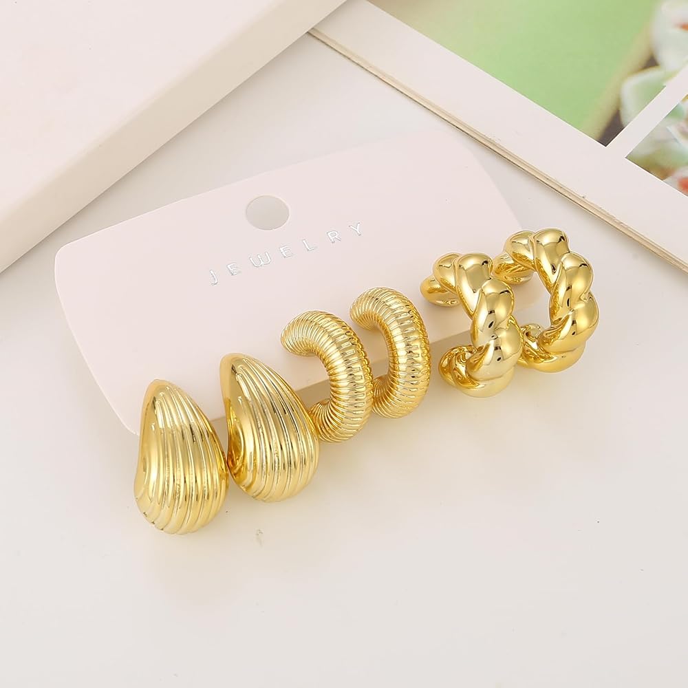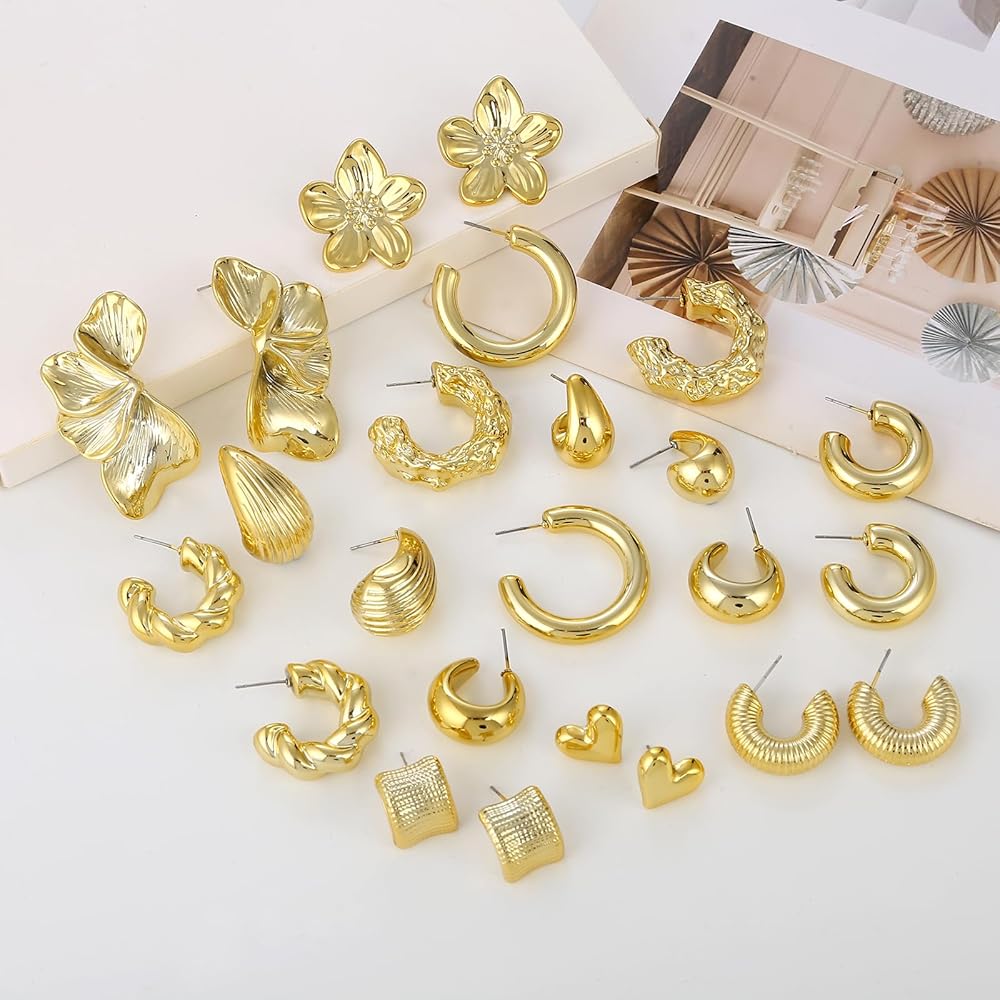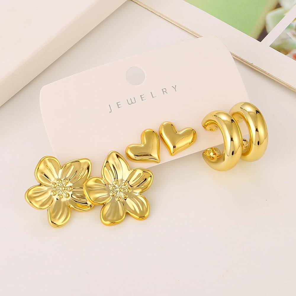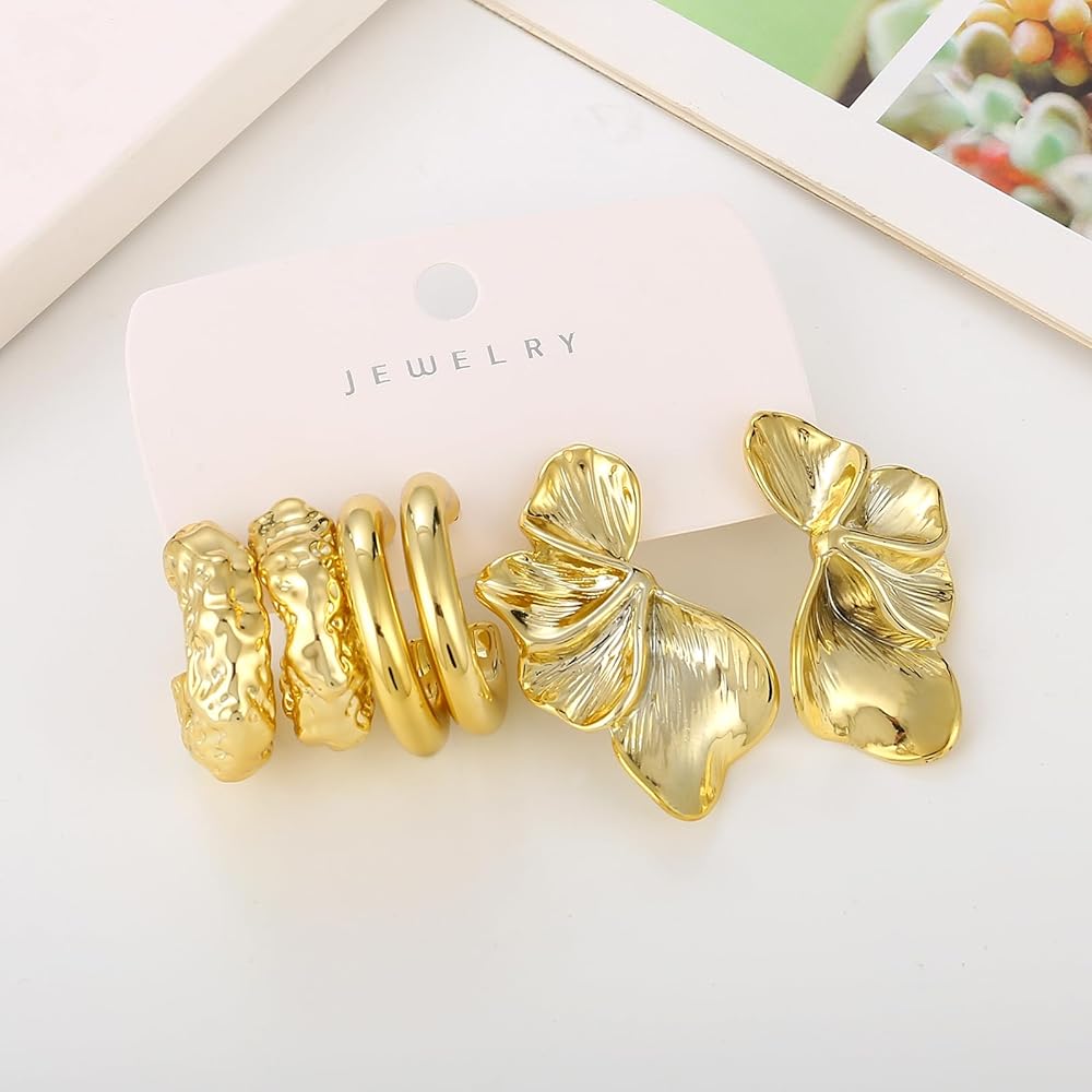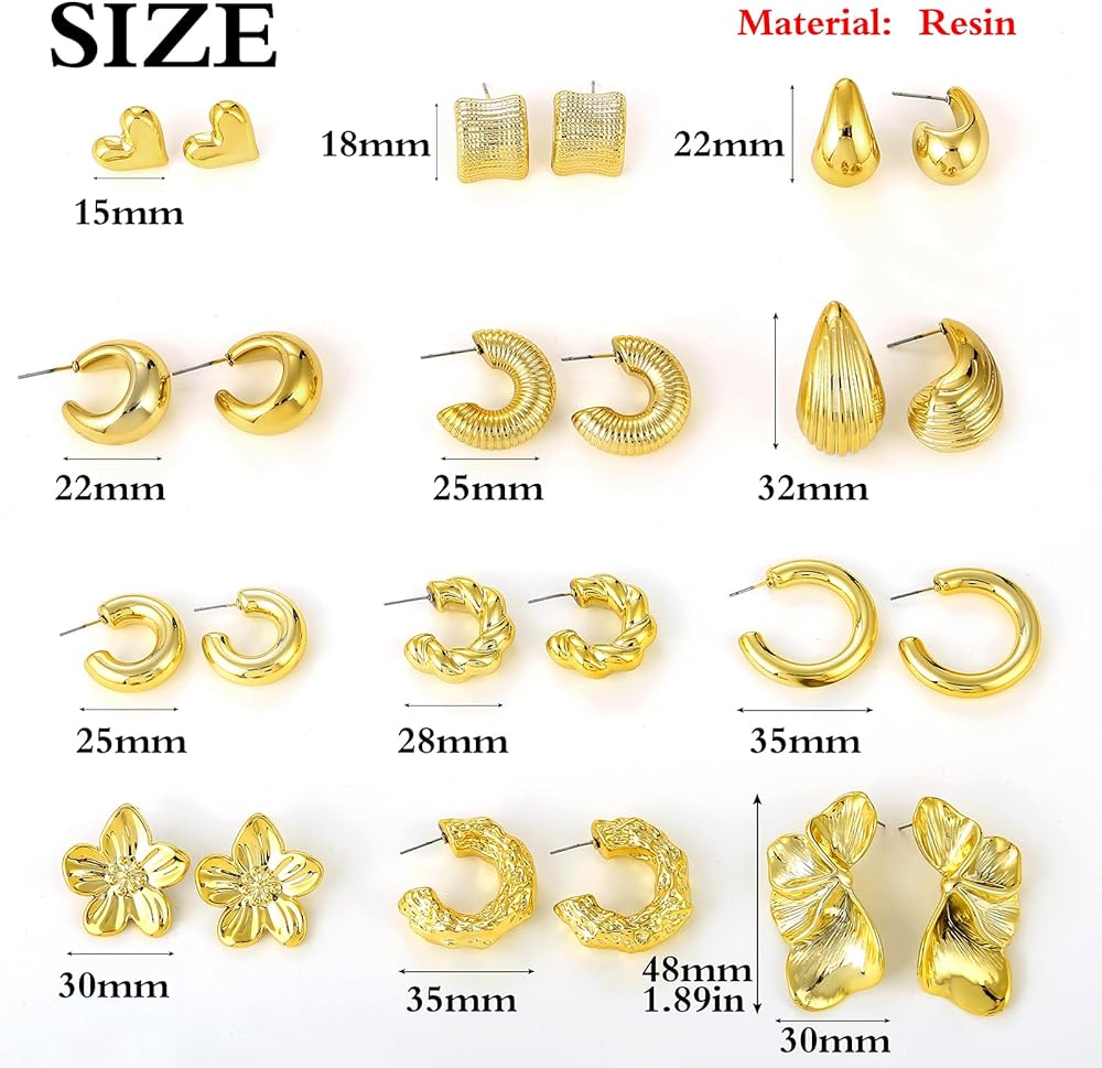 12 زوجًا من الأقراط الذهبية المكتنزة للنساء لا تسبب الحساسية سميكة مفتوحة ملتوية مجموعة أقراط هاجي العصرية على شكل ورقة زهرة أقراط متدلية ذهبية