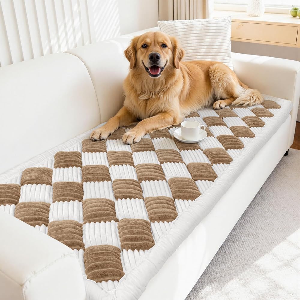 غطاء أريكة للكلاب غير قابل للانزلاق: تم تصميم أغطية أريكة الحيوانات الأليفة الخاصة بنا بظهر غير قابل للانزلاق يمسك وسادة الأريكة بقوة، ويمنع التحرك ويضمن تجربة جلوس واسترخاء ثابتة. يمكنك الاستلقاء على غطاء الأريكة المضاد للانزلاق للقراءة أو مشاهدة التلفزيون أو الاستمتاع بوقت الفيلم الرائع. عندما يلعب حيوانك الأليف أو يقفز أو يركض بالطاقة، سيبقى غطاء الأريكة الخاص بنا للكلاب ثابتًا في مكانه بشكل آمن، مما يوفر عليك مشكلة تعديل غطاء الأريكة باستمرار.