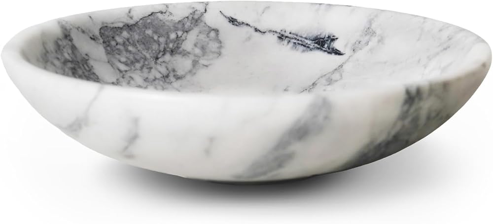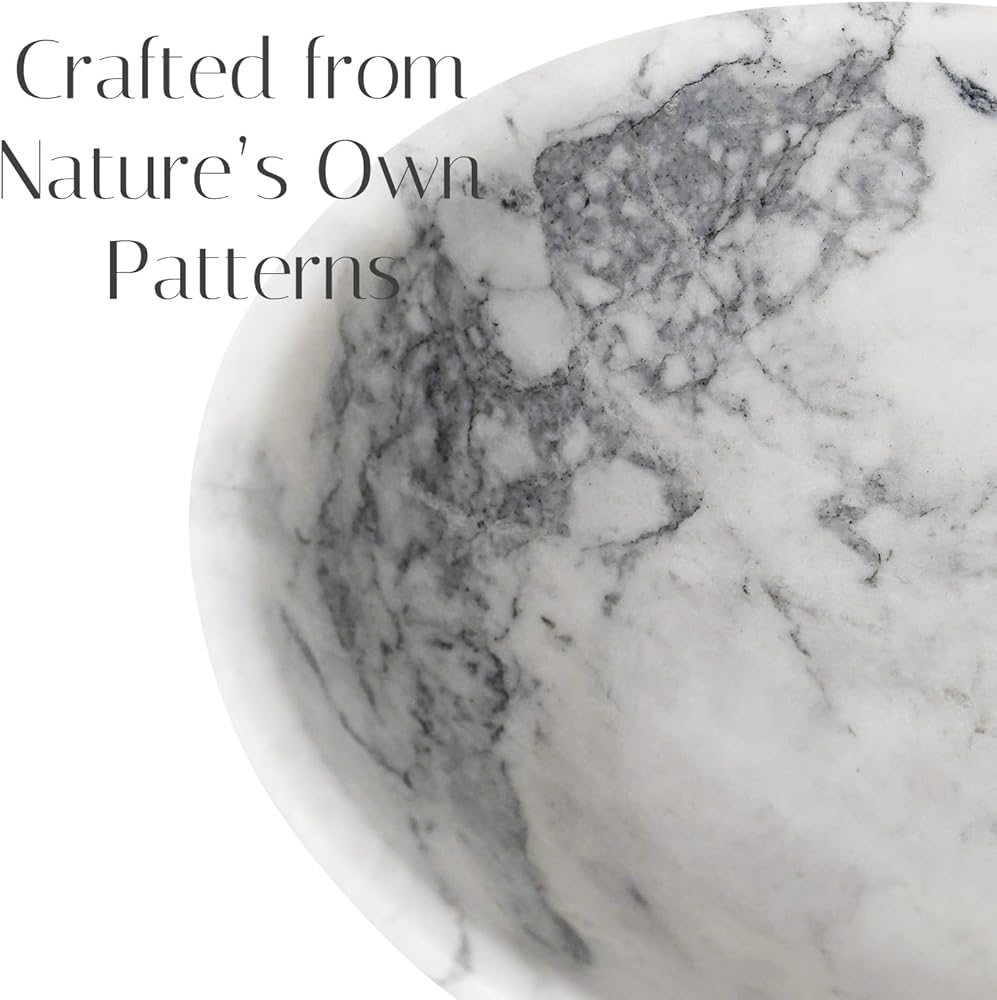 【رخام أبيض طبيعي مع عروق رمادية أنيقة】 مصنوع يدويًا من الرخام الطبيعي الأصلي، كل وعاء يعرض عروقًا رمادية فريدة للحصول على مظهر عضوي أنيق. قطعة حجرية خالدة ترتقي بأي نمط داخلي — بدءًا من الديكور الحديث البسيط وحتى الديكور الانتقالي الراقي.