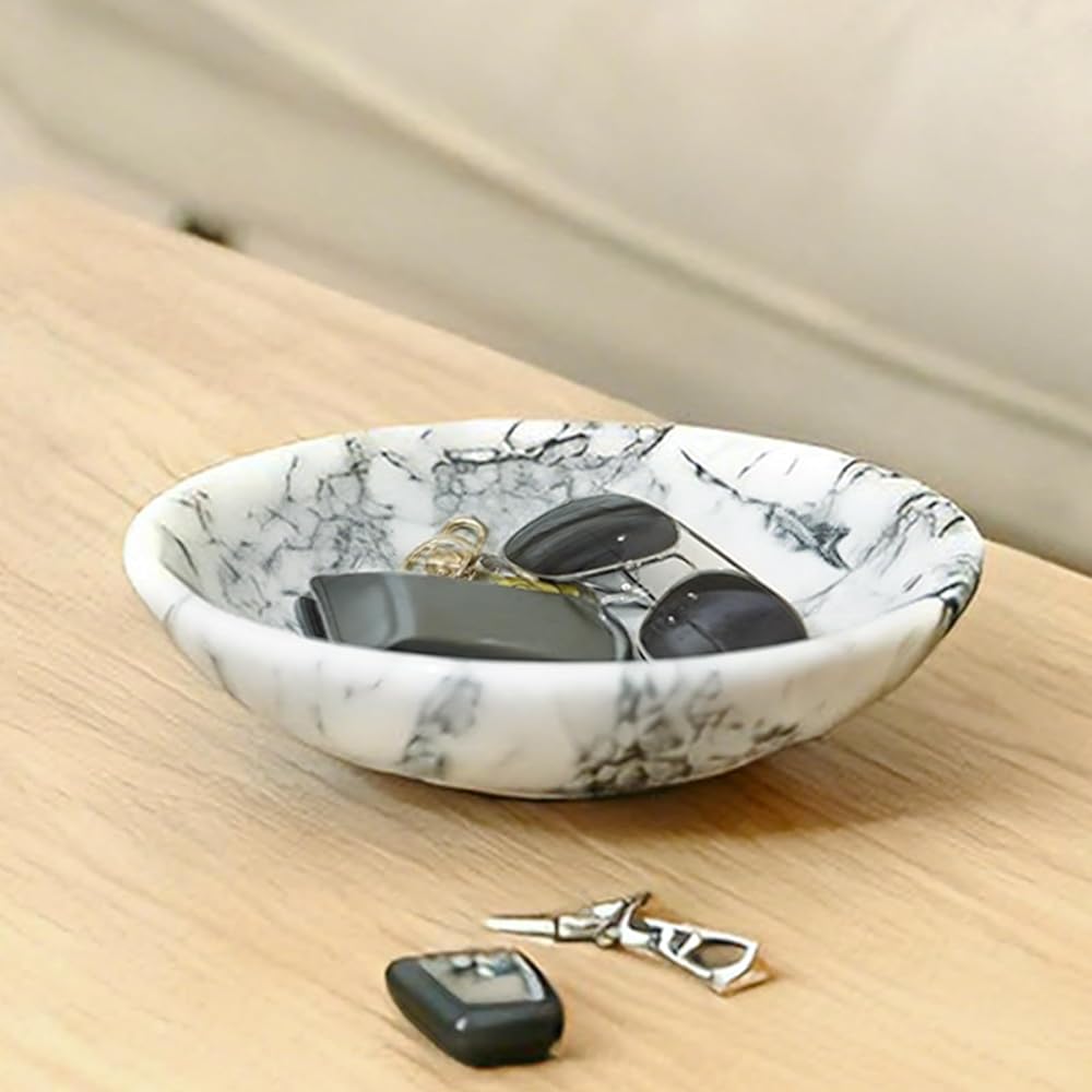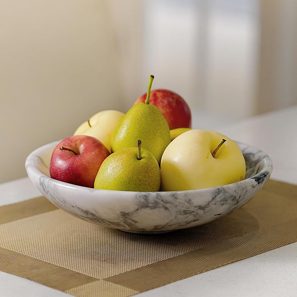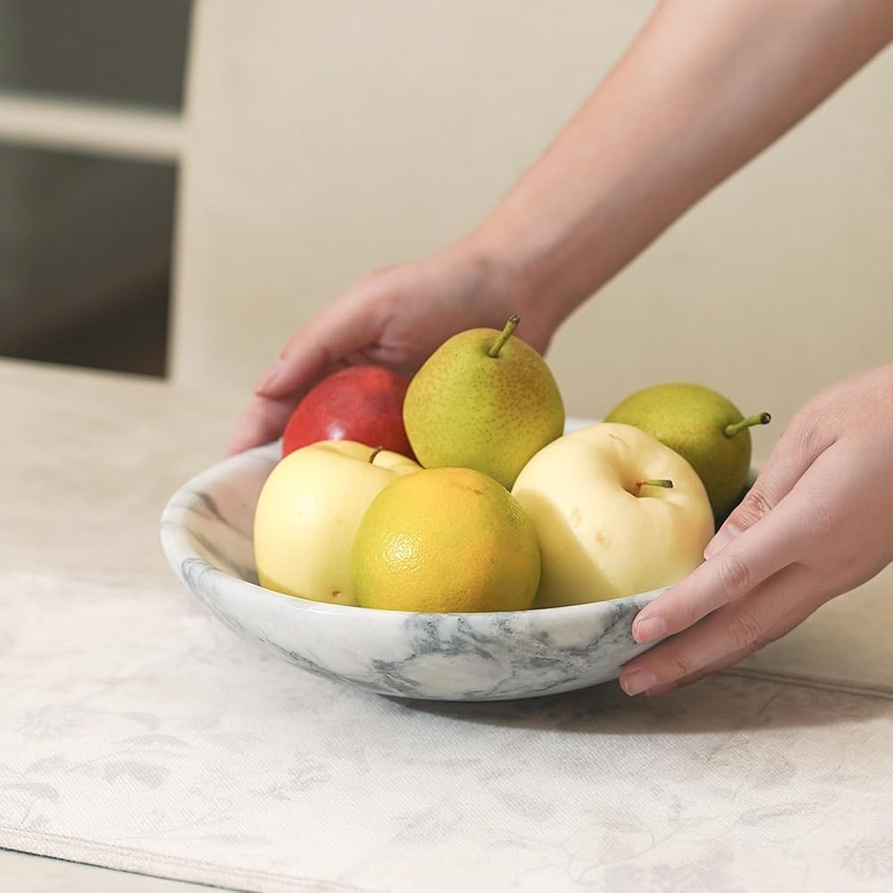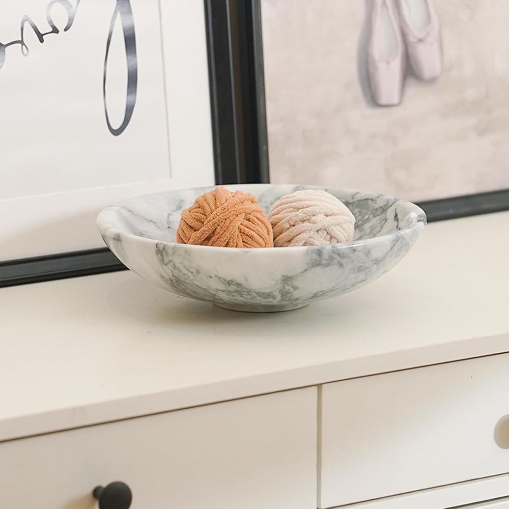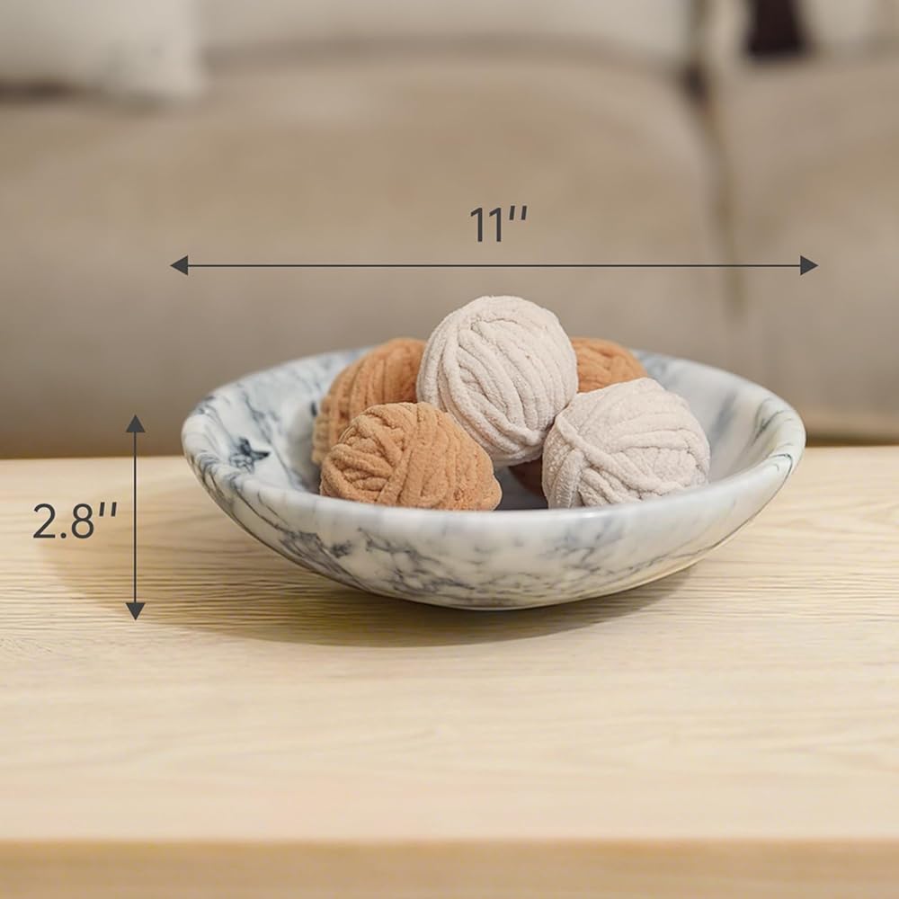 وعاء رخامي مزخرف كبير باللون الأبيض، مصنوع يدويًا من الحجر الأبيض والرمادي الطبيعي لديكور المنزل، وعاء كبير للإمساك بجميع المفاتيح مقاس 27.94 سم للمدخل، وعاء طاولة القهوة، وعاء فاكهة رخامي للقطعة المركزية