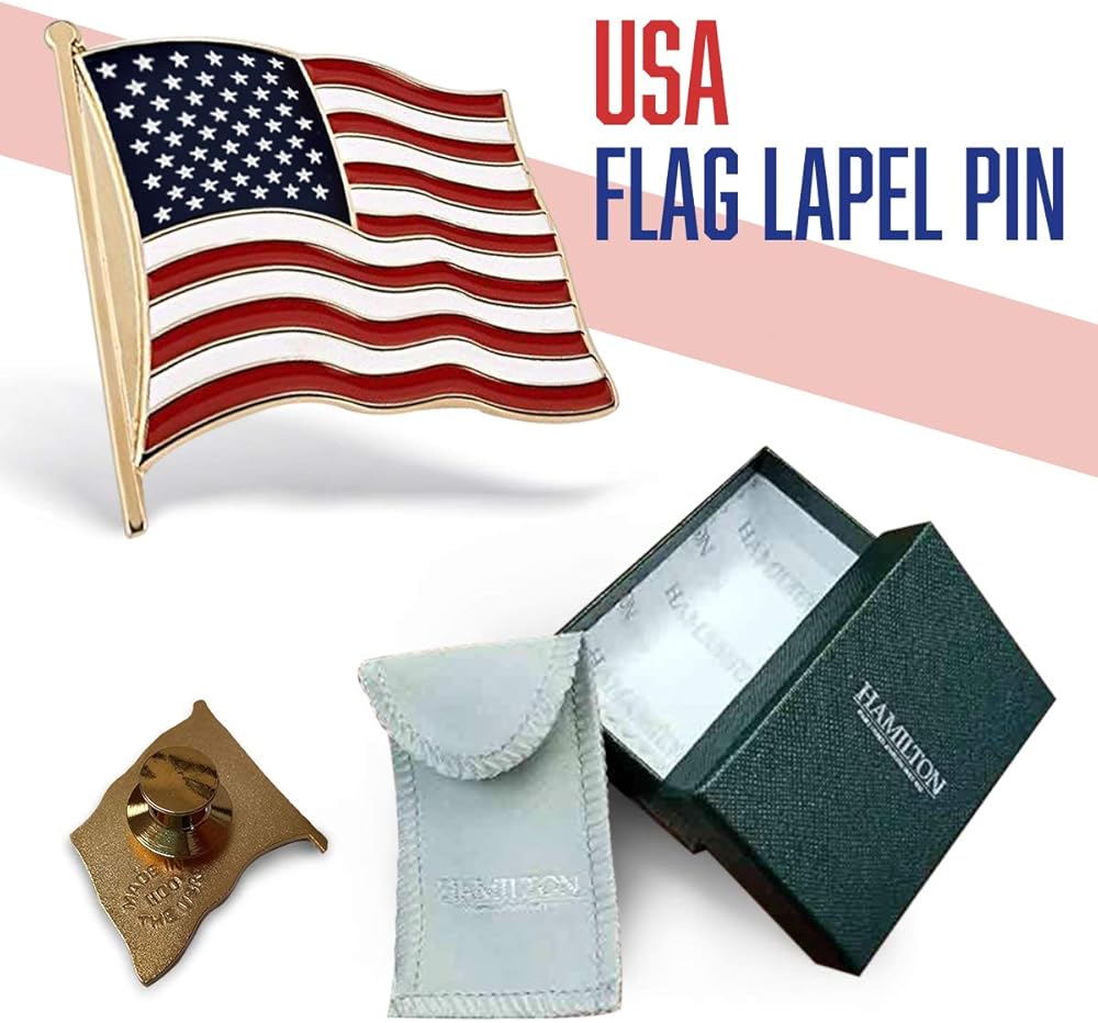 نوصي بارتداء هذا الدبوس على طية الصدر اليسرى، حتى تبقى أمريكا إلى الأبد - حرفيًا ومعدنيًا - بالقرب من قلبك.
