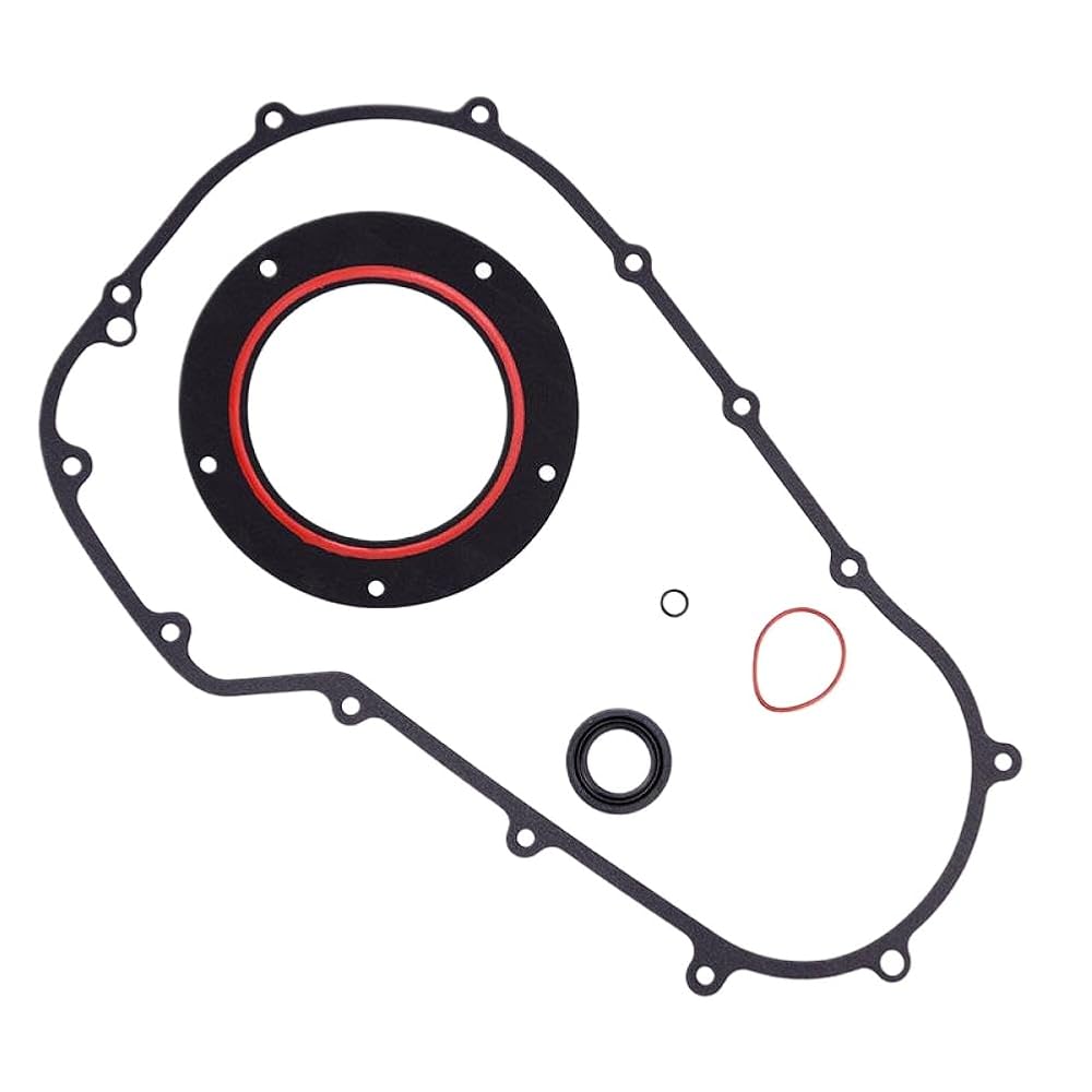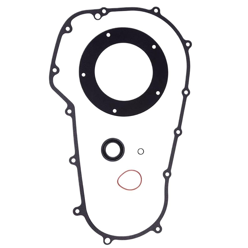 Motorcycle Clutch Primary Cover Gasket Kit for CVO Electra FLHTKSE FLHTPI FLHTK Ultra Limited FLHTK JGI-25700378-K The clutch primary cover gasket is a critical sealing component that maintains the integrity of the engine by preventing oil leaks between the clutch assembly and the engine case.Over time, exposure to heat, pressure, and regular can cause gaskets to degrade, which may lead to fluid leakage and potential damage to internal components.The JGI-25700378-K gasket kit is designed specifically for CVO Electra models including FLHTKSE, FLHTPI, FLHTK Ultra Limited, and FLHTK, compatibility with the specifications.Constructed from materials, this gasket resists operational stresses such as elevated temperatures and mechanical strain.Its precise design allows for proper alignment with the clutch primary cover and engine case, supporting sealing performance.A secure fit helps maintain engine efficiency and contributes to a clean, well-maintained appearance in the engine compartment.This gasket kit supports standard installation procedures using common hand tools.It is compatible with various engine oils and lubricants used in motorcycle applications.When replacing the gasket, it is recommended to follow standard mechanical practices, including cleaning mating surfaces and tightening fasteners to the manufacturer's specified torque values to a leak-free seal.Regular inspection during routine maintenance can help identify wear or deterioration early.Signs such as oil seepage around the clutch cover area may indicate the need for replacement.Using a direct-fit gasket kit like the JGI-25700378-K supports consistent engine performance and helps extend the service life of related components.For riders maintaining their CVO Electra models, the JGI-25700378-K clutch primary cover gasket kit provides a functional solution for preserving engine and operational cleanliness.Installing a properly engineered gasket contributes to long-term engine health and confidence during.