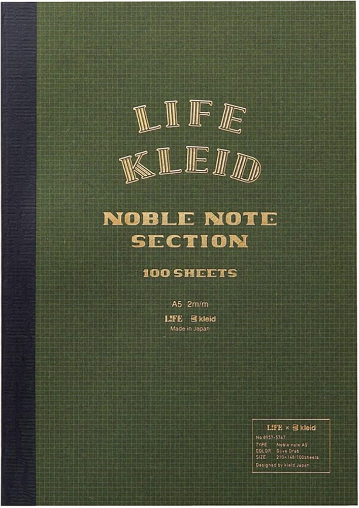 Noble notebook in collaboration with "LIFE" x "Kleid". Kleid's signature product "Noble Note" has been ordered separately from Life. This special noble notebook is made from "L Writing Paper" by Life company based on the characteristic of Kleid's 0.08 inch (2 mm) square. The collegiate logo design evokes the apparel and makes it a unique statement.