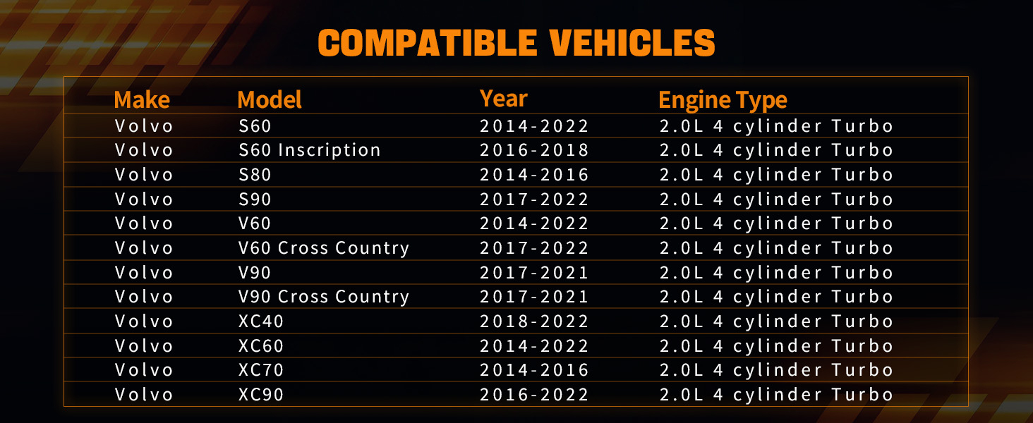 المركبات المتوافقة: متوافقة مع فولفو S60 (2014-2022)، S60 Inscription (2016-2018)، S80 (2014-2016)، S90 (2017-2022)، V60 (2014-2022)، V60 Cross Country (2017-2022)، V90/V90 Cross Country (2017-2021)، XC40 (2018-2022)، XC60 (2014-2022)، XC70 (2014-2016)، XC90 (2016-2022). يرجى التأكد من رقم OE الخاص بسيارتك وسنة الإنتاج والطراز قبل الشراء