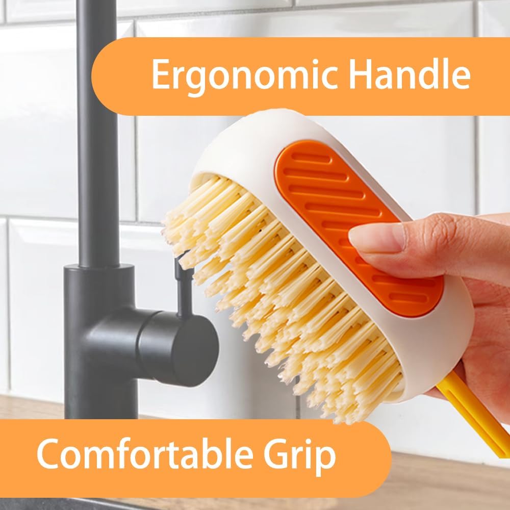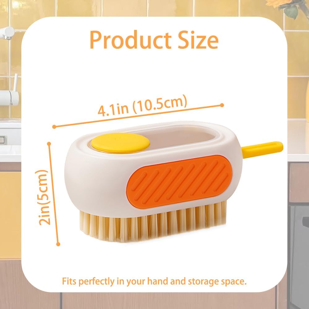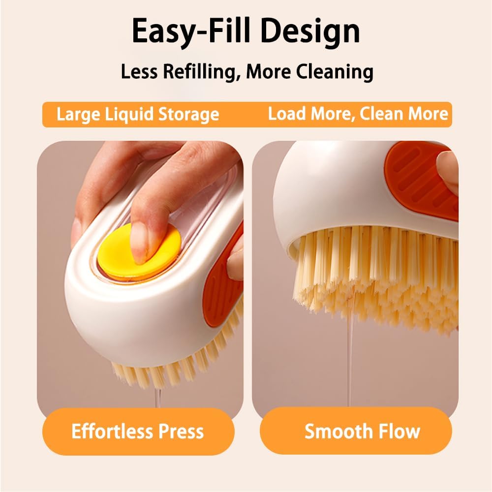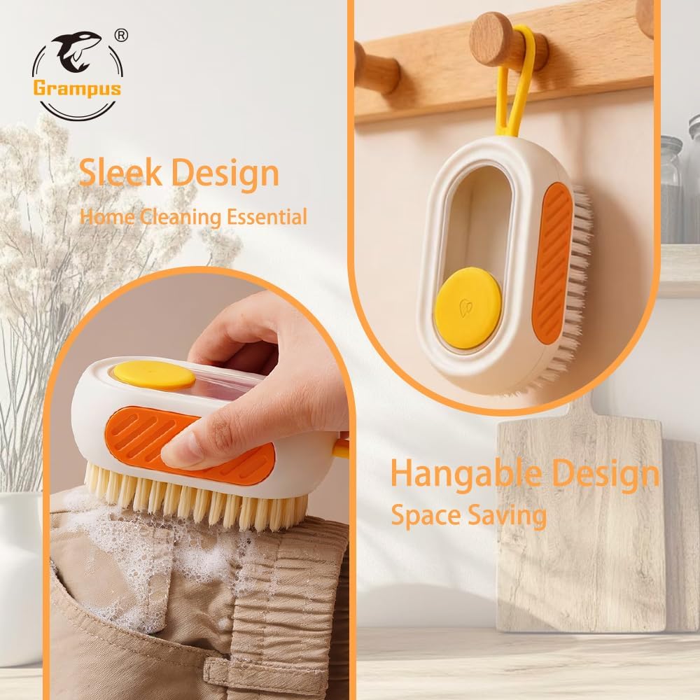 فرشاة تنظيف الكل في واحد قابلة لإعادة التعبئة مع خزان مدمج، اضغط لتوزيع المحلول لتنظيف الأسطح المتعددة: الملابس والأحذية والعجلات والمطبخ والحمام. شعيرات PET كثيفة وقابلة للتعليق، ذات سعة كبيرة