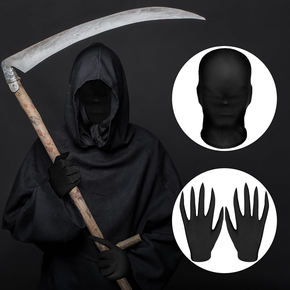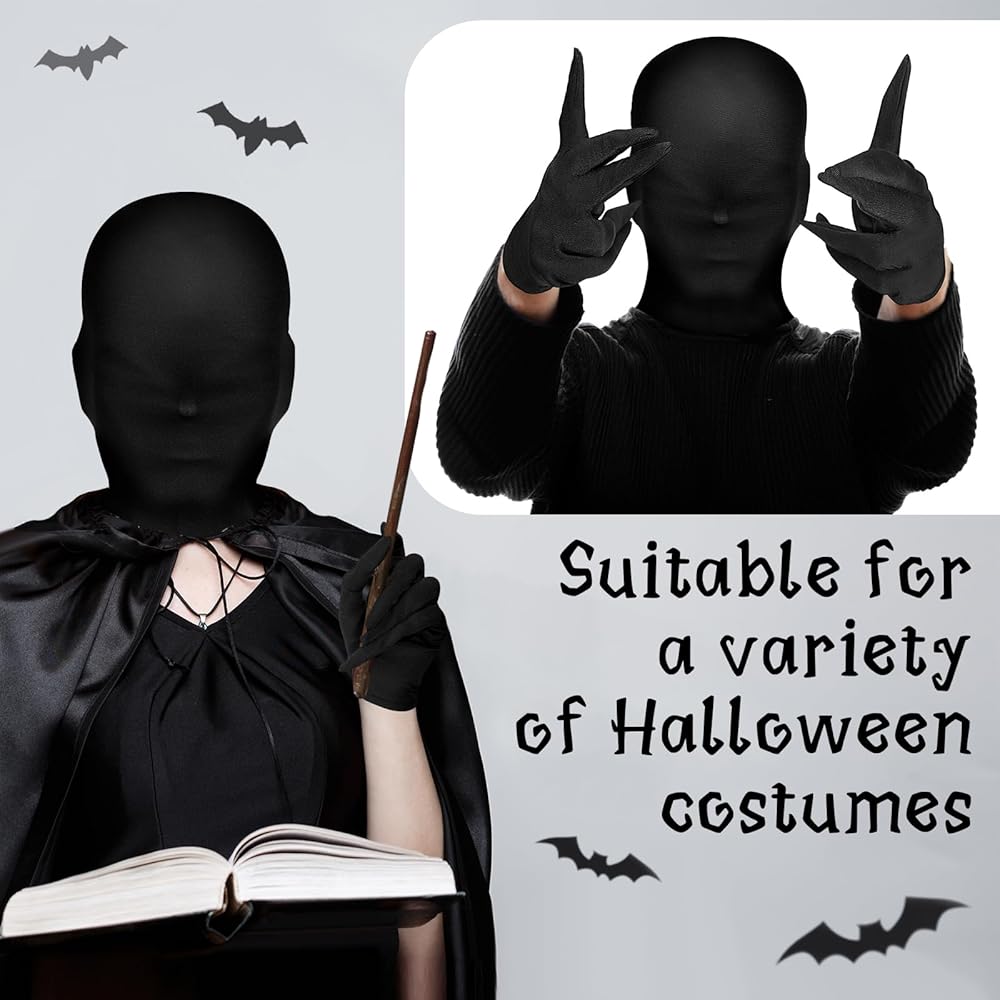 مثير للإعجاب وغامض: قناع الهالوين بدون وجه يمكنه تغطية رأسك ورقبتك، لإضافة شعور رائع وغامض، وتتميز القفازات التنكرية بتصميم طرف الأصابع المدبب، مميز ومثير للإعجاب، وأنيق وغريب