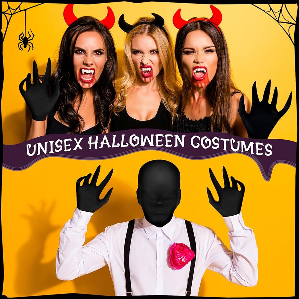 مجموعة إكسسوارات أزياء الهالوين: سوف تحصل على قناع واحد بدون وجه وزوج واحد من القفازات التنكرية، كل ذلك باللون الأسود ليتناسب مع أزياء الهالوين المختلفة، لمساعدتك على إكمال زي تنكري مخيف