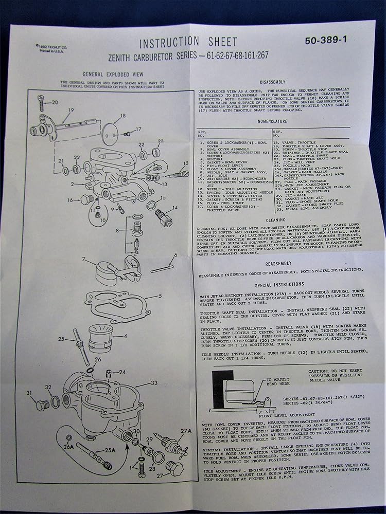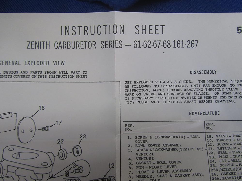 Lincoln Welder SA-200 REDFACE SHORTHOOD BLACKFACE ZENITH CARBURETOR KIT, Fits Zenith series 61,62,67,68,161,267
