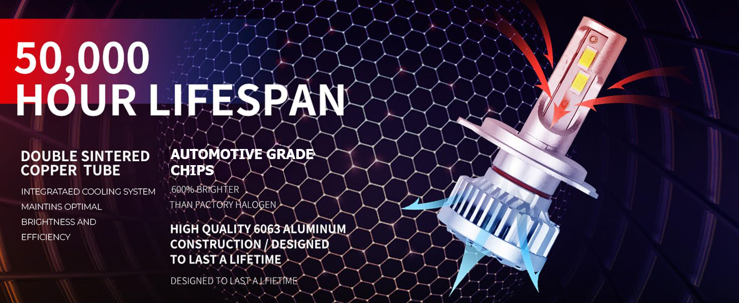 • 【أكثر سطوعًا بنسبة 600% من الهالوجين】- رقائق عالية الجودة للسيارات مع 22000 لومن حقيقي لكل زوج، درجة حرارة لون 6000 كلفن. يوفر تصميم نمط الشعاع الذي يركز على المصنع نطاق إضاءة أوسع وأبعد يصل إلى 6 مرات أكثر سطوعًا من لمبة الهالوجين الأصلية. مصنوعة لتجميع المصنع الخاص بك.
