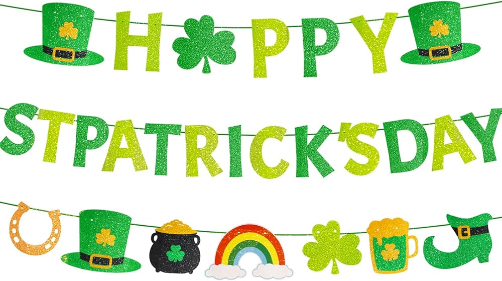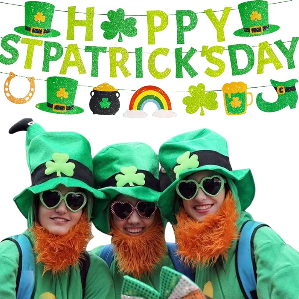 Package Includes - The St Patricks Day decorations includes "HAPPY ST PATRICK'S DAY" banner, 7pcs St. Patrick's Day elements. Perfect for St. Patrick's Day decorations- simply hang them on walls or any desired location to decorate Clover Shamrocks party !
