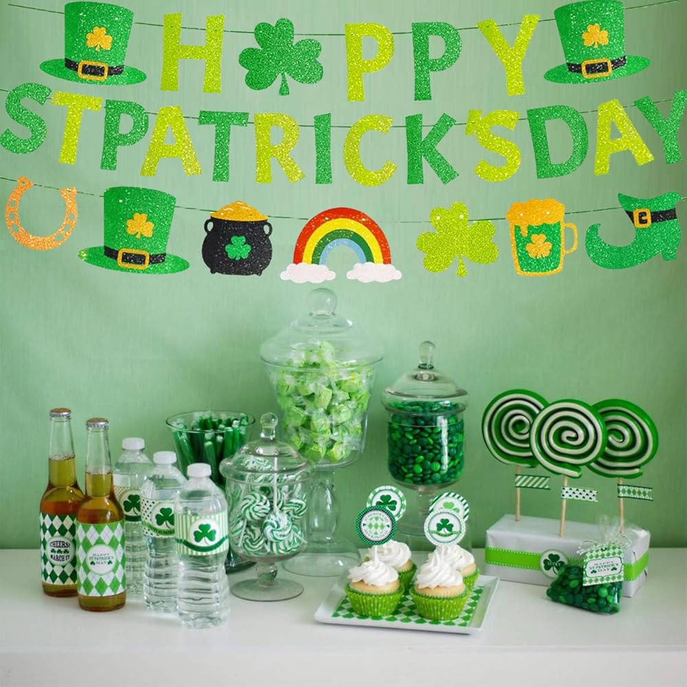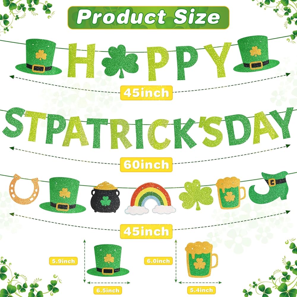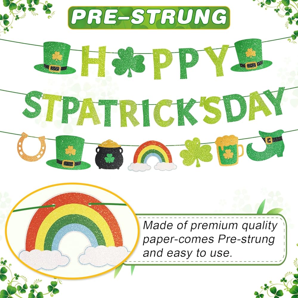 Premium Quality - This St. Patrick's Day decorations supplies are made of high quality material,the St Patricks Day banner garlands featuring vibrant colors on heavyweight Gold Glitter cardstock, Eco-friendly components ensuring sustainable celebration.