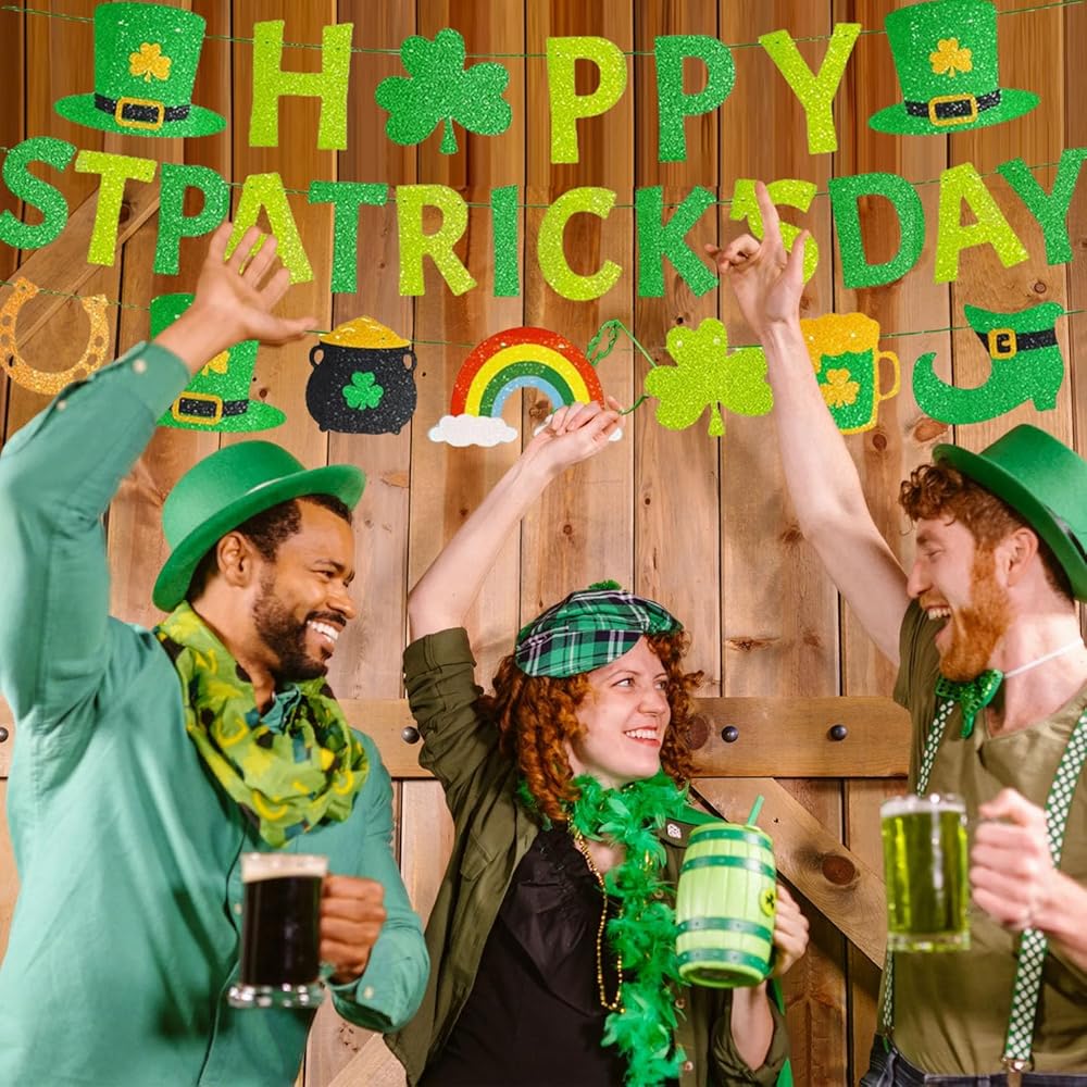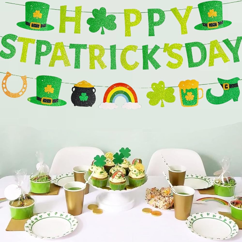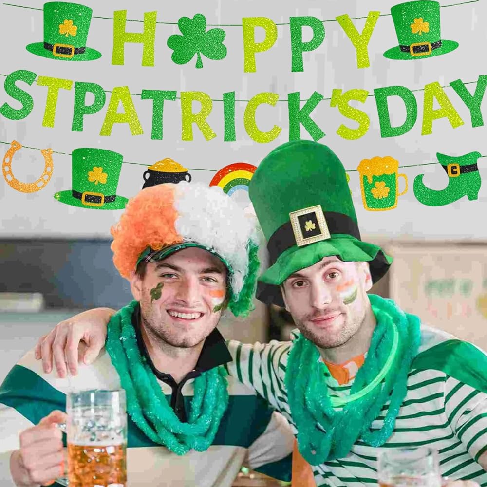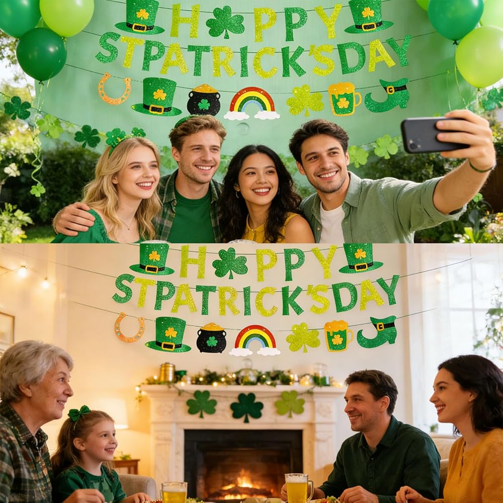 Premium Quality - This St. Patrick's Day decorations supplies are made of high quality material,the St Patricks Day banner garlands featuring vibrant colors on heavyweight Gold Glitter cardstock, Eco-friendly components ensuring sustainable celebration.
