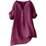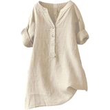 Betadog Linen Boho Shirt for Women Short Sleeve Gauze Crewneck Loose Fit Button Tops Summer Vacation Casual Blouses 2026