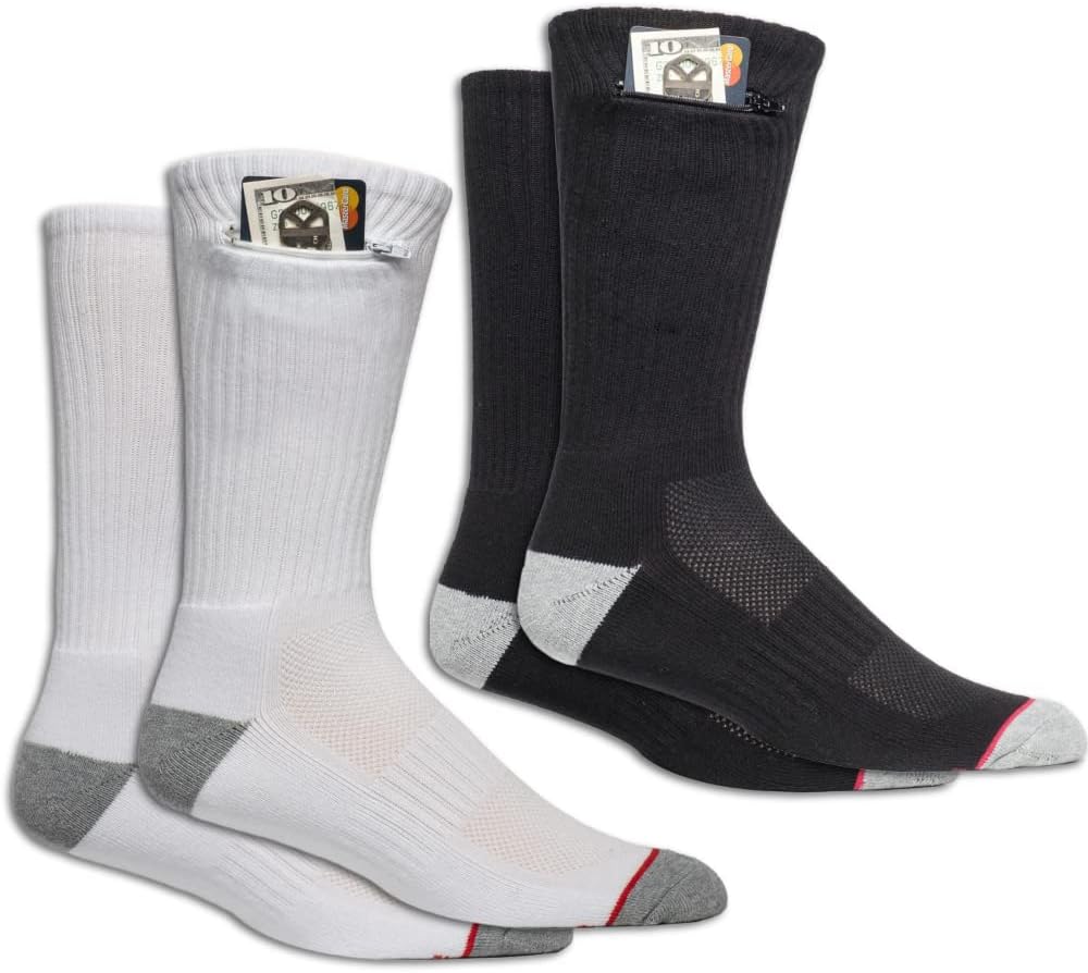 Material Composition: Socks - 90% Polyester, 10% Spandex; Pocket - 100% Polyester