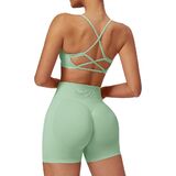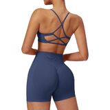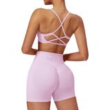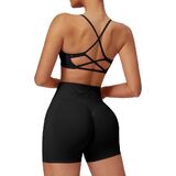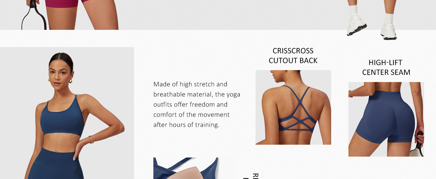 Design: Allow you to move or run with ease with our yoga outfits -- compression sports bra and butt-lifting shorts. Compression scoop neck sports bra, double crisscross straps at back, can add a touch of allure and beauty when remaining breathable. Movable bra pads enhance up, convenient to adjust, replace or wash, push up your chest and hug your curves in the right curves. High rise butt-lifting yoga shorts, partial ribbed waist, can effectively flatten the lower abdomen and lift the firm butt. High stretchy widen waistband, scrunch butt at back, accentuates your charming curve by its butt-lifting effect. Made of high stretch and breathable material, the yoga outfits offer freedom and comfort of the movement after hours of training. Skin-friendly fabric, not easy to deform, allow for enough flexibility without restraint. Say goodbye to discomfort. Occasions: Fit for yoga, pilates, running, jogging, riding, ball games, gym, fitness, workout, exercise, daily wear, indoor or outdoor activities. Care Instruction: Wash separately with like colors, line dry, no bleach or iron, do not dry clean. If you have any question about our product, please contact us, we will response you within 24 hours. Size Chart: Please allow slight 1-3cm difference due to manual measurement and refer to the details to choose the suitable size. Tag No.S: Bust: 25.2" / 64cm; Top Length: 7.0" / 18cm; Waist: 22.8" / 58cm; Hip: 27.1" / 69cm; Shorts Length: 11.4" / 29cm; Tag No.M: Bust: 26.7" / 68cm; Top Length: 7.4" / 19cm; Waist: 24.4" / 62cm; Hip: 29.1" / 74cm; Shorts Length: 11.8" / 30cm; Tag No.L: Bust: 28.3" / 72cm; Top Length: 7.8" / 20cm; Waist: 25.9" / 66cm; Hip: 31.1" / 79cm; Shorts Length: 12.2" / 31cm; Tag No.XL: Bust: 29.9" / 76cm; Top Length: 8.2" / 21cm; Waist: 27.5" / 70cm; Hip: 33.0" / 84cm; Shorts Length: 12.6" / 32cm; Friendly Tips: Photo color might be a little different from the actual product due to color display of different monitors.
