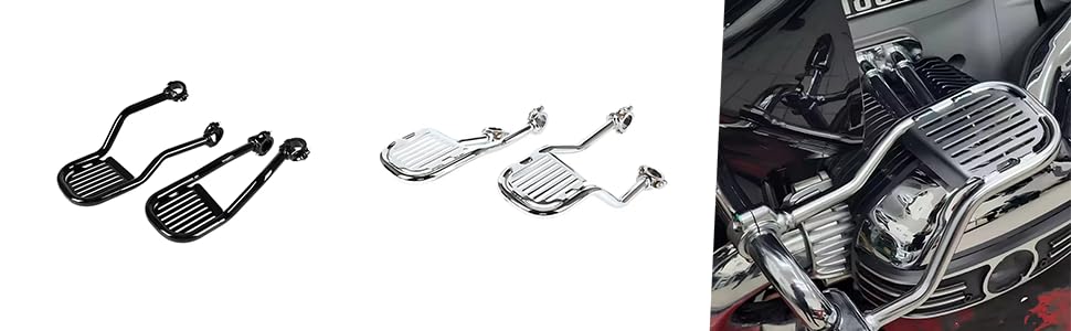 • 【راحة محسنة】توفر مساند أرجل الدراجات النارية دعمًا أفضل للساقين للراكبين وتقلل من التعب الناتج عن الرحلات الطويلة. عند التسارع بشكل حاد أو الانعطاف، يمكن للراكب التحكم بشكل أفضل في تأرجح الجسم من خلال الساقين، مما يحسن توازن السيارة ورشاقتها.