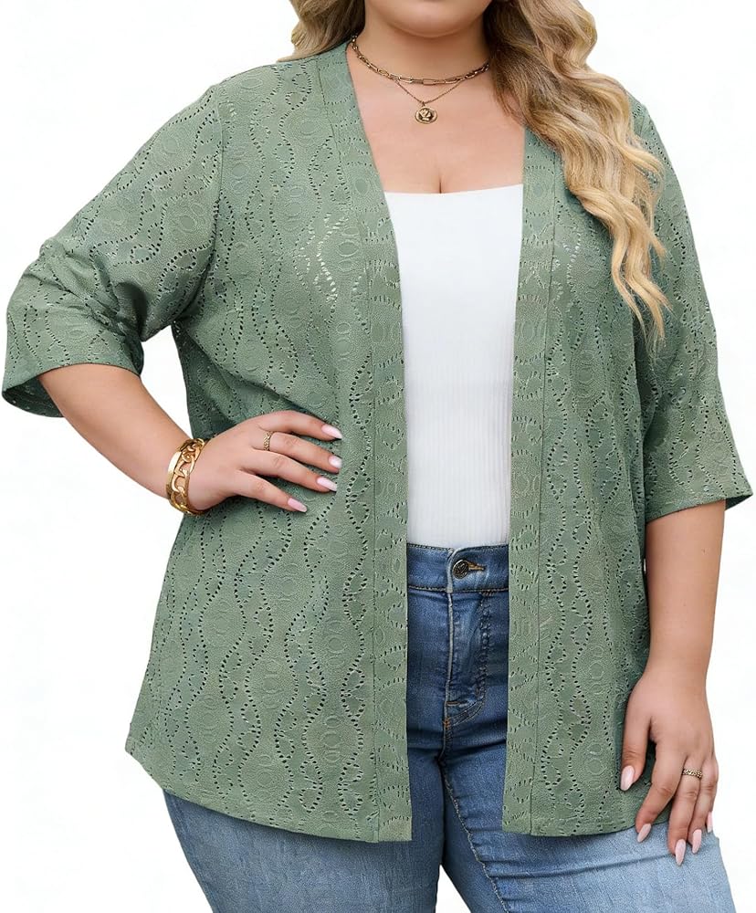 التصميم: سترة صوفية مفتوحة من الأمام من نسيج الجاكار، رقبة على شكل حرف V، نصف كم، فضفاضة، ناعمة، فضفاضة، خفيفة الوزن وقابلة للتنفس