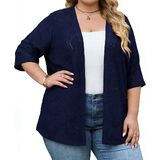 سترة حريمي بمقاس كبير، متوفرة بمقاسات 1X-5X لتناسب أنواع الجسم المختلفة ومجموعة متنوعة من الألوان الصلبة مثل الأسود والأبيض والأخضر والوردي والأزرق الداكن والأحمر النبيذي
