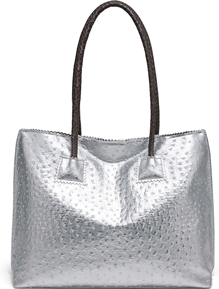 【فريدة وأنيقة】يمكن استخدامها كحقيبة يد أو حقيبة كتف نسائية. مصنوع من جلد نباتي بنمط النعام ويتميز بمقابض مضفرة، وهو بسيط وأنيق ويتناسب بسهولة مع كل شيء في خزانة ملابسك. تشتمل هذه المجموعة على حقيبة كبيرة للنساء وحقيبة يد مطابقة، مثالية لحمل الضروريات.