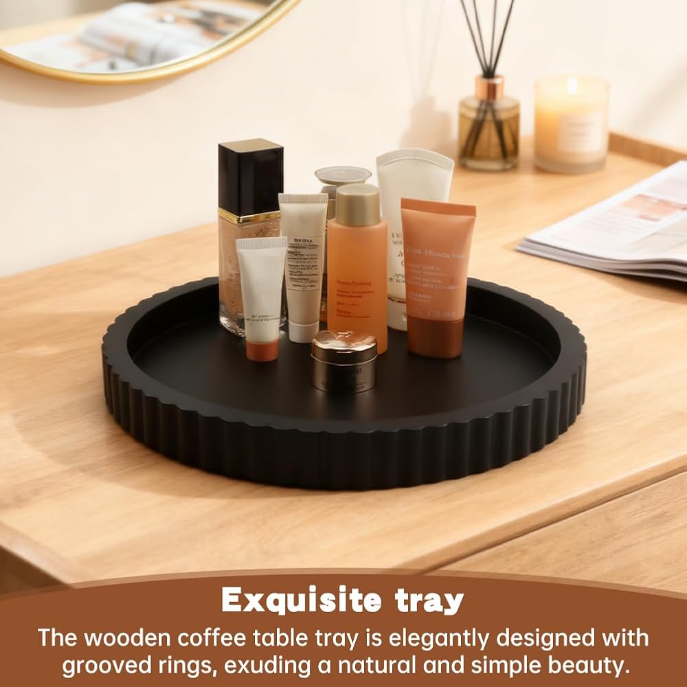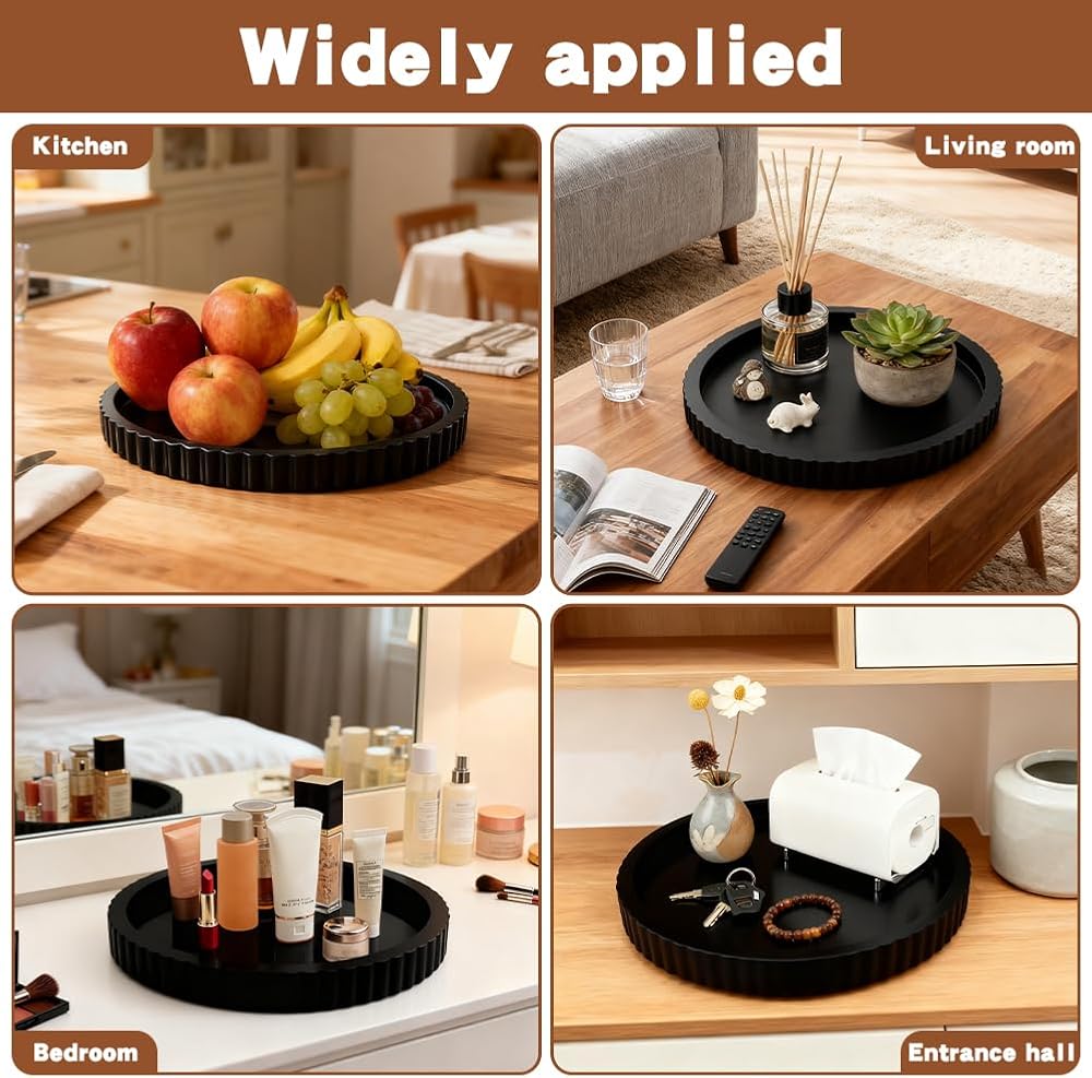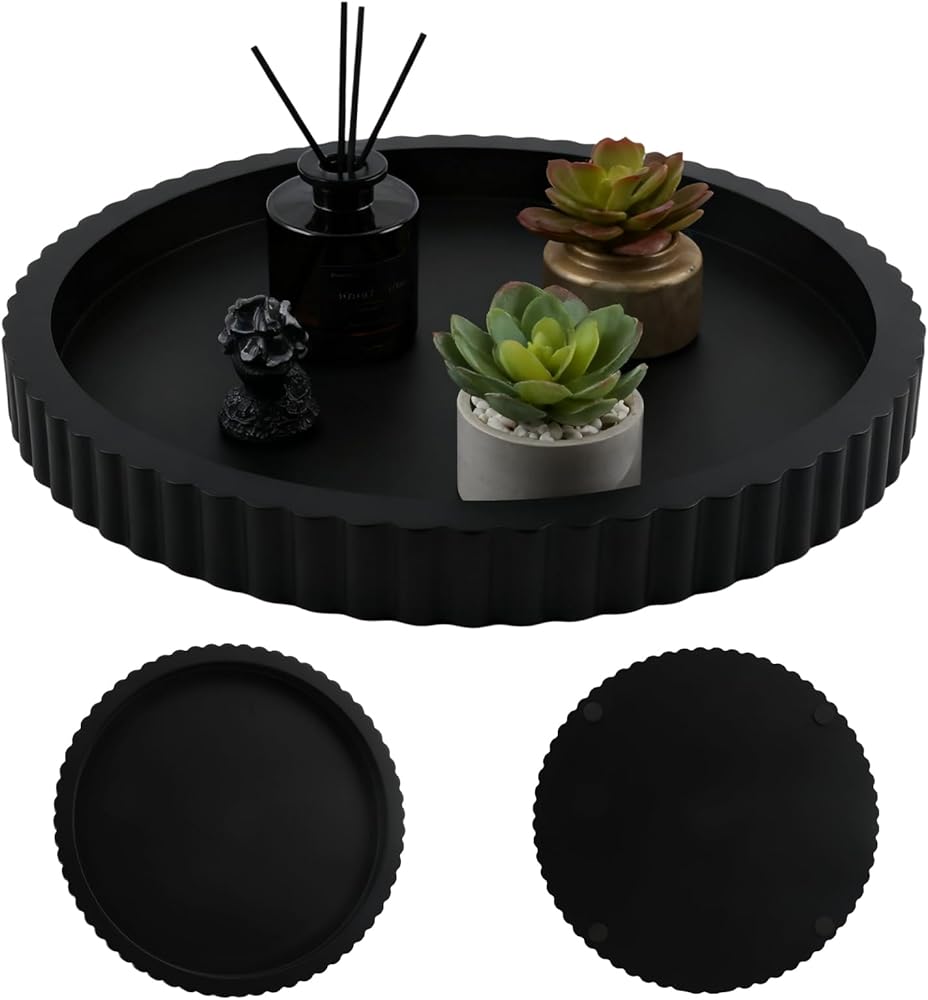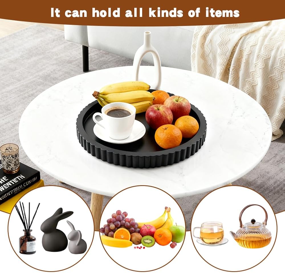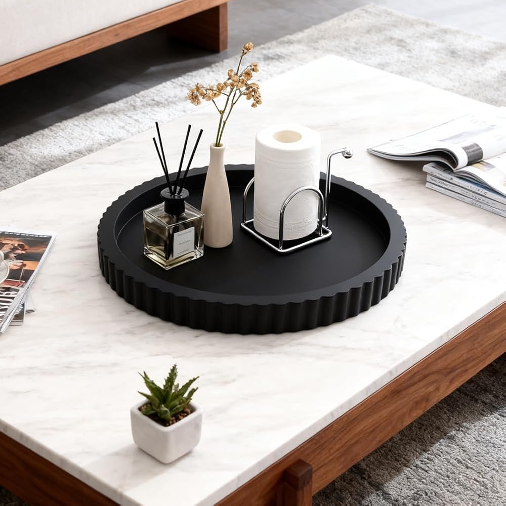 • 【Ideal Size Proportion, Space-Saving and Well-Coordinated】: With a carefully designed size 11"L x 11"W x 1.18"H, it's spacious enough to hold commonly used small items, yet won't take up too much space on the coffee table. This ensures a well-balanced and uncluttered tabletop layout. It is perfect as a living room tray, kitchen island tray, or round serving tray. The fluted design makes this an ideal modern serving tray.